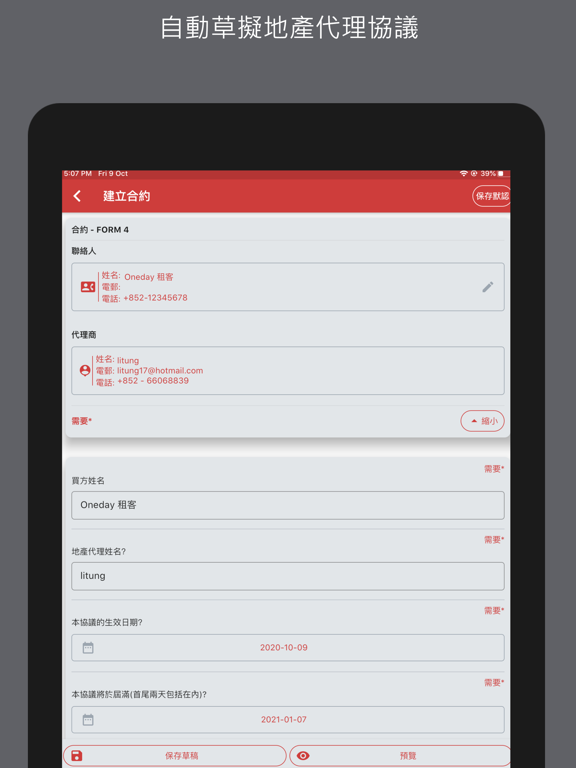 搵地(OneDay) Agent App,可能係全香港最好用既地產代理APP. 一個APP 幫你一條龍咁完成收盤到放廣告既每一個程序。 【樓盤儲存】 免費儲存樓盤資訊在APP上, 等你可以隨時隨地解答客人查詢。 【智能合約】 Form 1 到 Form 6 都有, Click 幾個掣就可完成到合約 - 性能提升和錯誤修正。