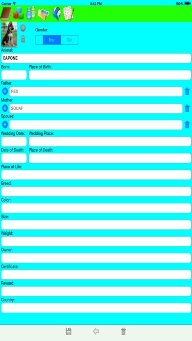 该计划旨在创建一个血统的动物。维持动物,他们的照片和视频的列表。 方案特点: - 动物的名单; - 建设血统的动物 (2D, 3D); - 动物祖先的建设分公司; - 绘制活动日历系列; - 一代人的名单; - 让一般个人相册; - 制作一般和个人视频档案; - 制作一般和个人的存档文件; - 在归档存储数据。 - 修复了导出到电子邮件时的错误 - 修复了导出到 iCloud 的错误