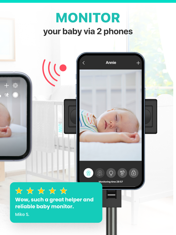 安妮是一个可靠的移动应用程序,帮助世界各地数百万父母照顾他们的孩子。 将2个手机或手表连接在一起,用虚拟婴儿摄像机和追踪器保证你的宝宝安全。 将手机和平板电脑连接到您的HOMEKIT或ONVIF IP摄像机上。 主要特点: - 在WiFi、E、3G、4G、LTE和5G上无限制地传输。 - 高达4k的视频和清晰的音频 - 你可以通过安妮与你的宝宝交谈 - 音频和视频模式切换 - 音频和视频录制 - 催眠曲和白噪音 - 婴儿追踪器/新生儿日志 - 遥控儿童装置启动 - 显示屏自动调光 - 音频活动图 - 监视定时器 - 智能静音 - 夜视 - 智能通知,即使会话断开时也是如此 - 低电量或电源断开的通知 - 支持HOMEKIT和ONVIF摄像机 - 高度安全的连接 - 多平台支持 - 24/7现场支持 视频婴儿监视器 4K* 安妮是一个视频保姆和婴儿追踪器,它可以让你在婴儿酣睡的时候通过手机的摄像头观察你的宝宝。请随意使用您设备的后置或前置摄像头。 婴儿追踪器* 监测宝宝的发展和里程碑,检查成长和健康状况,并跟踪重要的事情--睡眠、喂食或换尿布。婴儿追踪器包括: - 自定义日志 - 个性化的提醒 - 无限的历史和统计数据 不受限制的婴儿监测 该应用程序在WiFi、3G、4G、5G和LTE上工作。无论你离宝宝多远,它都会让你与宝宝保持联系。 催眠曲和白噪音 选择和播放摇篮曲和白噪音给你的宝宝。 多儿童和多家长 如果你需要同时照看两个孩子,没问题。如果你的祖母想加入对你的新生儿的监控,也不是问题。安妮婴儿监视器允许你根据你的家庭规模,在你的账户中添加尽可能多的设备。 与宝宝对话 在视频模式下与您的宝宝交谈或唱歌。你的宝宝也能看到你。 夜视和夜光 增强的夜间模式灵敏度,在夜间看到您的宝宝。对于较远的距离,可使用安妮应用程序控制的可调节的设备内手电筒光。 运动检测视频和音频 当检测到任何运动时,Annie会给你发送一个视频序列通知。 视频记录 在你的加密安全云上自动保存和记录所有的视频运动。通过你所有的连接设备检查记录。 活动图表 查看你的宝宝在会议期间的视频和音频活动历史。 智能云通知* 如果宝宝的房间里有噪音,安妮婴儿监视器会根据噪音敏感度设置通知您,即使在会议期间父母设备断开连接。 显示屏自动调光 父母和婴儿装置将设备显示屏调至低亮度。它节省了两个装置的能源消耗,并且不会照亮房间。当检测到婴儿活动时,亮度会自动增加。 智能静音* 父单元是无声的,直到婴儿单元检测到阈值噪音并在父单元上播放音频。 远程儿童装置启动 当Annie应用程序打开时,父单元可以远程激活可用设备上的婴儿单元。 * 应用商店中的独特功能 _____ 安妮婴儿监视器是免费下载的,并在试用期间为用户提供免费监测。安妮还提供每周、每月或每年的订阅服务,使用户可以在所有网络上完全获得音频和视频监控。安妮婴儿监视器会自动续订;必须在订阅结束前至少24小时取消订阅,以避免续订。你可以从你的iTunes账户设置中管理或关闭Annie Baby Monitor的自动续订。当用户购买订阅时,免费试用期的任何未使用部分将被没收。付款将在确认购买时从iTunes账户中扣除。 使用条款: https://www.anniebabymonitor.com/terms-of-service/ 隐私政策: https://www.anniebabymonitor.com/privacy-policy/ - 此版本中的错误修复和改进包括稳定性和性能问题的修复。