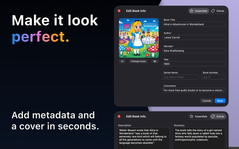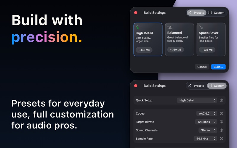 AudioBo 将音频文件转换为真正的 M4B 有声书——带有正确的章节、干净的元数据和可靠的长时间播放。 MP3 文件适合音乐,但在有声书方面表现不佳:没有真正的章节支持、书签不可靠、恢复播放行为不一致。AudioBo 创建真正的 M4B 有声书——专为长时间聆听而设计的格式。 M4B 在 Apple Books、音乐、CarPlay 甚至经典 iPod 中支持章节、书签和流畅导航。AudioBo 生成结构正确的 M4B 文件——而非仅看起来像有声书的重新打包音频。 --- AUDIOBO 适合谁 适合所有想要一个合适的 M4B 有声书的人——无需终端工具、编解码器或设置方面的博士学位。 AudioBo 为您处理技术选择,力求在不增加不必要文件大小的情况下获得最佳质量。 --- AUDIOBO 的与众不同之处 - 没有任意限制 创建任意长度的有声书——从短录音到多小时项目——无需强制分割或笨拙的变通方法。 - 无不必要的重新编码 如果您只更改元数据或封面,AudioBo 会保留原始音频流——无质量损失、无浪费的处理。 - 正确的 M4B 容器和章节标准 AudioBo 编写适当的 M4B 文件,完全支持 QuickTime 和 Nero 章节格式——一个干净、符合标准的容器,在任何地方都能正确运行,而非仅看起来正确的脆弱技巧。 - 真正原生的 macOS 体验 设计成让 Mac 用户立即感到熟悉。清晰的结构、可预测的行为、与系统一致的界面。 --- 技术细节(给好奇的人) AudioBo 可处理人们实际拥有的格式。您可以导入 MP3、AAC (M4A)、OGG、WAV、WMA、WV、APE、FLAC、Opus 或 AIFF。 音频编码选项: - AAC-LC 或 HE-AAC - 根据您的来源选择单声道或立体声 - 比特率从 16 到 320 kbps - 采样率从 22.05 到 96 kHz 兼容性: - 在 Apple Books、音乐、iOS、macOS 和经典 iPod 上原生播放 - 与 Plex、BookPlayer、VLC、Audiobookshelf 和大多数有声书应用顺畅配合 - 通过任何现代音频播放器在 Android 和 Windows 上完全支持 - 直接导出到 Apple Books,带有正确的章节、封面和元数据 --- 了解更多并下载演示版: orsolabs.dev/audiobo – 导入包含数百个文件的有声书速度大幅提升 – 导出窗口界面更流畅、更精致 – 内部改进为即将推出的激动人心的新功能铺平道路 如果您喜欢 AudioBo,请留下评价——这对我们帮助很大!