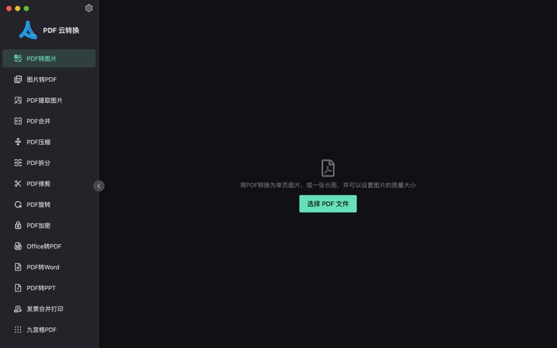 PDF云转换,EasyYun出品,一款极速、不限量的PDF工具,满足日常办公需求。 PDF云转换核心功能: 1、PDF文件提取:从一个PDF文件提取页面,重新组合成一个新的PDF 2、PDF合并:将多个PDF合并成1个PDF 3、PDF旋转:随意旋转你的PDF文件 4、PDF拆分为PDF:将1个PDF文件按照每隔N页进行拆分 5、PDF拆分为图片:将1个PDF中指定的页面拆分成图片格式,并可以设置图片的质量大小 6、PDF提取图片:将1个PDF文件的所有图片提取出来 7、PDF压缩:减小PDF文件 8、PDF加密:用密码给PDF文件加密,以确保敏感数据的机密性 9、图片转PDF:单张图片或多张图片转换成1个pdf 10、Office转PDF:支持word(docx, doc)、excel(xlsx, xls)、ppt(pptx)格式,Word转PDF 11、PDF转Word:将PDF转换为支持Word(doc)格式 12、PDF转PPT:将PDF转换为支持PPT(pptx)格式 其他功能: 中文、英文切换 主题切换,明亮和暗黑模式 带来2个新鲜好玩的功能: 1、新增发票合并打印功能; 2、九宫格转换;