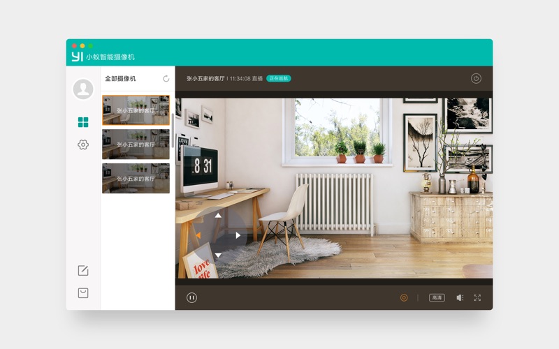 把对家的关心搬到电脑上: 小蚁摄像机可以放在任何你想看到的地方,通过手机、pad、电脑等终端设备,随时随地了解家中情况,让沟通看得见。 mac版小蚁摄像机支持账号密码登录,同时还可以使用小蚁摄像机手机App扫描二维码,快捷登录; 支持任意切换直播视频分辨率,大屏观看更清晰; 支持小蚁云台摄像机镜头方向遥控,任意调整观看视角; 支持小蚁摄像机全系产品安装使用 更多功能持续更新,敬请期待! -用户体验优化