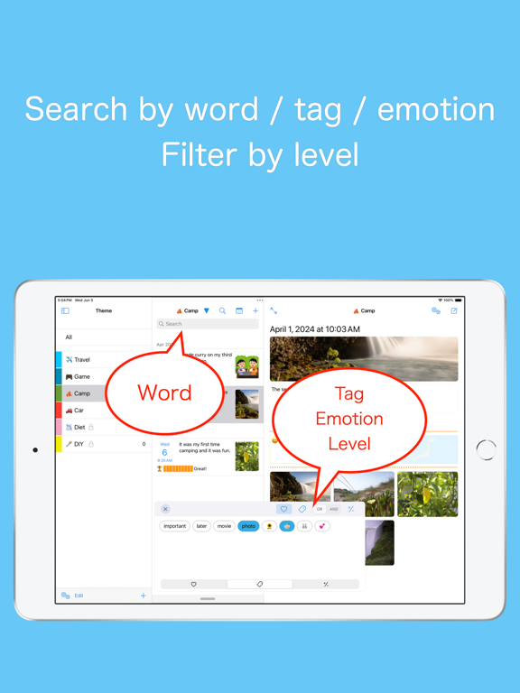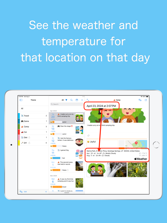 一款主题日记应用程序,让您一天可以写多次。 除了图像、视频、位置信息之外,你还可以记录你当时的情绪。 推荐作为第一本日记 --- 主题 --- 根据主题写下事件。 主题既然决定了,就不用担心写什么了。 主题示例 ·家庭 ·孩子 ·宠物 ·工作 ·学习 ·爱好 ·美食 ·旅行 ·恋爱关系 您可以使用表情符号和颜色添加强调音。 您可以通过长按列表来更改显示顺序。 您可以通过将其设置为秘密主题来隐藏它。 --- 事件 --- 由于它是用短句(150个字符以内)写成的,所以很容易写,而且持续时间很长。 你也可以写长句子。 (高级功能) 由于我是按主题来写事件的,所以我不必担心没有什么可写的。 一天内可以随意书写,因此它也可以用来记录时间。 您最多可以添加 4 张照片或视频。 (可通过高级功能进行扩展) 您还可以添加位置信息,这对于记录您的美食之旅和旅行很有用。 您可以添加标签并跨主题显示具有相同标签的事件。 您可以通过将其设置为秘密事件来隐藏它。 --- 照片和视频--- 从照片库加载并显示照片和视频。 您可以放心,即使您添加大量照片和视频,应用程序的存储数据容量也不会增加。 如果您从照片库中删除它,您将无法再从应用程序中查看它,但缩略图将保留。 从应用程序拍摄的照片保存在照片库中,因此 请设置完全访问您的照片库的权限。 --- 情绪和水平--- 您可以记录事件中的情绪(心情和感受)及其水平。 同样的情绪可以用不同的程度来表达,比如高兴或者非常高兴。 它以表情符号和仪表显示,以便于查看和理解。 --- 隐私 --- 您可以通过将主题和事件设置为“秘密”来隐藏它们。 您可以放心,任何不知道如何显示它的人都不会看到它。 您还可以隐藏显示方法描述本身。 您可以通过设置密码来保护整个应用程序。 您的密码安全地存储在您的钥匙串中。 它还支持生物识别身份验证,例如 Face ID 和 Touch ID。 --- iCloud --- 数据保存在iCloud中,因此无需进行备份操作。 您可以与多个设备同步,例如 iPhone 和 iPad。 --- 高级功能 --- - 无字数限制 - 图片数量无限制 - 隐藏广告 - 显示当前天气和温度 请参阅下面有关订阅和使用付费功能的条款和条件。 1. 隐私政策:https://gsoft.jp/privacypolicy/ 2. 使用条款:https://www.apple.com/legal/internet-services/itunes/dev/stdeula/ Mac版本新增支持图片显示