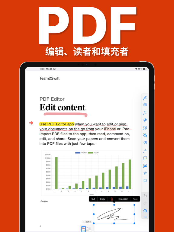 Use PDF Editor app when you want to edit or sign your documents on the go from your iPhone or iPad. Import PDF files to the app, then read, comment on, edit, and share. Scan your papers and convert them into PDF files with just few taps. Perform all basic PDF tasks: - Quickly open and view PDF files - Search, scroll, and zoom in and out Scan paper documents to PDF: - Turn you camera into advanced document scanner - Perspective document transformation - Color adjustions - Automatic crop tools Anotate PDF files: - Comment on PDFs using sticky notes and drawing tools - Highlight and mark up text with annotation tools - View and respond to annotations in the comments list - Use Apple Pencil with iPad Pro to improve your precision Sign important documents: - Quickly fill out PDF forms by typing text into fields - Use your finger or Apple Pencil to e-sign any PDF document All documents are stored locally on your device, they are not available to us, nor to third parties. You can easily share documents using the export option. Privacy Policy: https://pdfeditor7.com/en/privacy-policy Terms of Use: https://pdfeditor7.com/en/terms-of-usage For any questions or requests, please use our customer support form at: https://www.team2swift.com/ • Added new PDF conversion features • Improved paywall interface • Performance improvements • Fixed UI bugs on iOS 26
