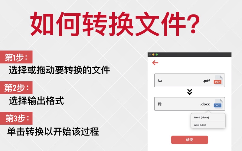 PDF To Word Converter 是一个易于使用的工具。这个应用程序的简单性使其成为您设备的终极 PDF TO WORD 转换器。 PDF To Word Converter 是一个文档转换器,可让您将文件转换为其他扩展名或格式。您可以轻松地将 DOC、DOCX 转换为 PDF 格式。并将 PDF 轻松转换为 DOC、DOCX 和 DOCM。 PDF To Word Convert 提供以下转换。 * PDF转Word * Word转PDF * Doc转PDF * Docx转PDF * PDF转Doc * PDF转Docx * DOCX To DOC 您可以轻松转换文件 拖动或选择您的文件。 选择输出格式。 按转换按钮。 Note: Premium Pass is required to Convert file.However Premium Pass beings with a free trial period, then an auto-renewable monthly subscription when trial ends. Yearly Plan has no free trial. Payment will be charged to your iTunes account at confirmation of purchase and will automatically renew (at the duration/price selected) unless auto-renew is turned off at least 24 hrs before the end of the current period. Account will be charged for renewal within 24-hours prior to the end of the current period. Current subscription may not be cancelled during the active subscription period; however, you can manage your subscription and/or turn off auto-renewal by visiting your iTunes Account Settings after purchase. Any unused portion of the free period will be forfeited when you purchase a subscription. Privacy Policy: https://sites.google.com/view/iatech/privacy Terms of Use: https://sites.google.com/view/iatech/terms - 小错误修复和改进。