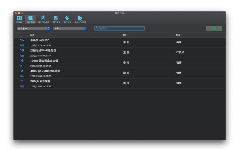 客户管理系统App 是一个组织良好且易于使用的软件,具有扩展功能,可管理您的个人和业务联系人,支持创建自定义联系人字段,记录客户待办事项,记录客户关系日志。 现在,可以获取iOS版本,共享数据。 记录重要客户的业务类别,性别,头像,名字,姓氏,公司名称,网站,部门,手机,传真,地址,电子邮件,备注。。。 当然,还可以自定义更多用户字段。 - 跟踪您与顾客,客户或任何专业的熟人关系,记录与客户的互动日志和待办事项。 - 自定义客户类别、客户标签,快速匹配客户。 - 可以通过客户类别、客户性别过滤客户数据。 - 可以选择不同的客户,不同的日期范围(今天,本周,本月,本年,全部),查看客户日志。 - 可以选择不同的客户,不同的日期范围(今天,本周,本月,本年,全部),查看客户待办事项。 - 每个客户的自定义字段可以修改,自定义键-值。 - 使用可自定义的用户字段存储重要的联系人数据。 - 可以导出联系人、待办、日志的CSV数据(可以导出所有数据 & 自定义日期范围)。 - 根据您的使用习惯,对客户姓氏、名称进行排序。 - 快捷地搜索客户信息、客户日志、客户待办事项、客户类别、客户标签。 - 根据一些用户的需求,性别可以设置为:男性、女性、其他、没有。 - 密码保护功能,您可以随时修改与移除密码。 - iCloud同步与备份数据。 - 使用Wi-Fi网络时,自动同步数据。 - 与iOS版本共享数据。 - CSV数据导出。 修复日期检视不隐藏的错误