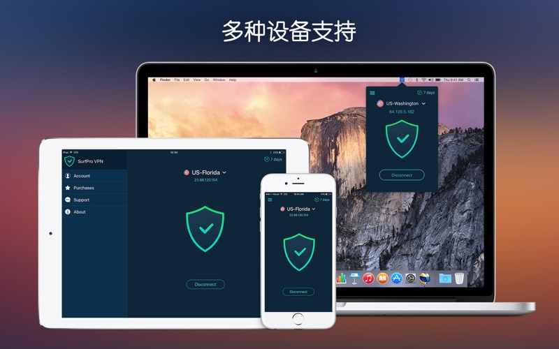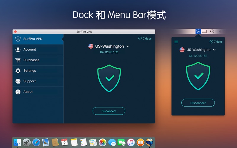 是不是讨厌上网的时候被监控,即使你没做什么非法的事?是不是想在上网的时候让自己的真实身份与地理位置对第三方完全不可见?如果上述问题有任一个问题答案为是,那你就需要《SurfPro VPN》。这是一款为 Mac、iPhone 和 iPad 开发的强大在线匿名工具。它支持全世界数百个代理服务器,无论你身处何方,都可以让你迅速、安全地访问任何网站。 功能: • 全面的隐私保护 • 保障数据与设备安全 • 隐藏你的 IP 和物理地址 • 位于 50 多个地区的 300 多台服务器(定期更新) • 不限流量与速度 • Dock 和 Menu Bar模式 • 可在系统启动时选择选自动连接 • 支持 iPhone、iPad 和 Mac • 一个免费帐户最多支持 5 台设备 • 专用 IP • 7 天免费试用全部功能 • 24/7 全天候专业技术支持 SurfPro VPN是免费下载的,可以试用7天。我们提供自动续订: SurfPro VPN 服务(基于以下计费周期): - 1个月:$3.99 - 3个月:$8.99 - 1年:$24.99 - 3年:$49.99 采用按月计费的其他设备: + 1个设备:$1.99 + 5个设备:$2.99 + 10个设备:$5.99 采用按月计费的个人IP,每月$14.99。设置您的个人 IP 可能长达 72 个小时。我们将在您的个人 IP 可以使用后通过电子邮件通知您。 - 将在确认购买后扣费 - 订阅自动更新,除非在当前活动期结束前至少24小时关闭自动更新。 - 您的帐户必须在当前订阅期结束前24小时内充钱更新。 - 订阅可以由用户管理,自动更新可以在购买后进入帐户设置关闭。 - 订阅活动期间,不允许取消当前订阅。 隐私政策:http://xwavesoft.com/privacy-policy-surf-pro-vpn.html 使用条款:http://xwavesoft.com/terms-and-conditions-surf-pro-vpn.html • Multiple fixes and improvements