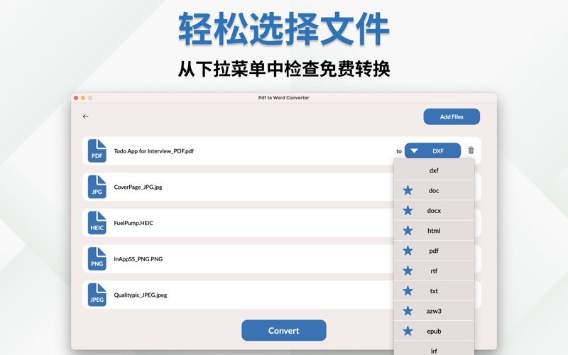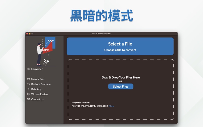 AppStore 现已提供最准确、最简单的 PDF 到 Word 转换器。 获取最新的照片到 PDF 转换器应用程序,将您的所有文档轻松地从一种格式转换为另一种 PDF 格式或 word 格式。 PDF to Word Converter 提供以下转换格式: PDF转Word PDF转DOC PDF转DOCX DOCX 转 PDF 文档转PDF PDF 到 HTML HTML 到 PDF PDF转TXT PDF 转 RTF RTF 转 PDF 还有很多!! 使用 PDF 到 Word 转换器非常简单: 1 - 选择或拖放文件 2 - 选择输出格式 3 - 按转换按钮,只需几秒钟 4- 将文件下载到您的 MAC 就是这样! 简单易行的几个步骤。 如果您喜欢该应用程序的简单性,请在 AppStore 上给我们评分。 有一些免费的转换格式,甚至无需开始试用或订阅即可使用。 这些包括: - PDF 到 SVG - PDF 到 EPS - PDF 到 DXF - PDF 到 LRF - CSV 到 PDF - LRF 到 PDF 所有其他转换格式需要订阅或终身购买 有每周、每月和每年的订阅。 每月订阅有 3 天的免费试用期。 年度和每周订阅没有免费试用。 还有一个没有免费试用的终身购买选项。 付款将在确认购买时从您的 iTunes 帐户中扣除,并将自动续订(以所选的持续时间/价格),除非在当前期限结束前至少 24 小时关闭自动续订。 帐户将在当前期间结束前 24 小时内收取续订费用。 在有效订阅期内不得取消当前订阅; 但是,您可以在购买后访问您的 iTunes 帐户设置来管理您的订阅和/或关闭自动续订。 当您购买订阅时,初始免费一周的任何未使用部分将被没收。 隐私政策: https://oliviafrank.co/privacypolicyPTW.html 服务条款: https://oliviafrank.co/termsandconditionsPTW.html 最好的 PDF 到 Word 转换器现已在商店上架 - 性能增强 - 紧急崩溃修复