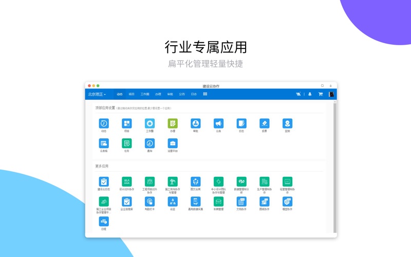选择建设云,您将获得一体化的企业“互联网+”应用解决方案。助力企业的全方位升级和转型需要。 一个移动办公平台—>灵活、轻量、按需选择企业管理应用,高效实现企业“管理效能升级” 一个企业社交平台—>扁平化的通力协作,企业内外全方位的“协作效能升级” 一个行业服务平台—>将企业自身业务,快速融入产业链的服务链条,实现“服务效能升级” 一个领域电商平台—>提供多渠道的企业业务推广、产品营销方式,整合已有资源快速实现“商业模式升级” 小小的优化了一下,改了个bug~~