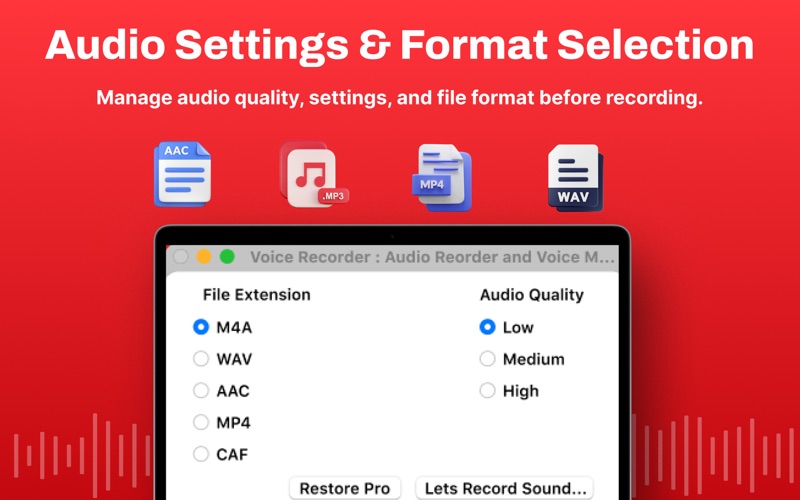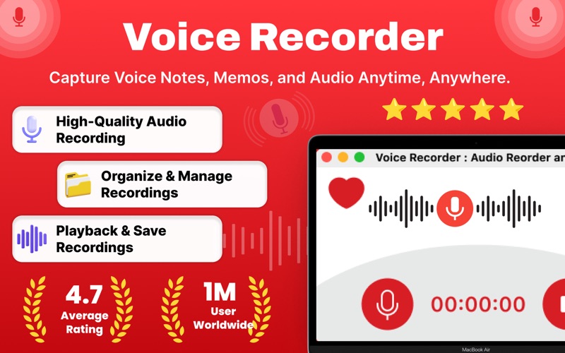 Voice Recorder – A Reliable and High-Quality Audio Recording App Voice Recorder is a feature-rich yet easy-to-use application designed to provide clear and professional-quality audio recordings in multiple formats. Whether you need to record voice memos, meetings, lectures, interviews, or personal notes, this app ensures high-quality sound capture with customizable settings. With an intuitive interface and powerful functionality, Voice Recorder makes recording and managing audio files effortless. Key Features 1. Instant Recording and Playback • Start recording with a single tap, making it convenient for quick note-taking or spontaneous ideas. • Play back recordings instantly to review important details without any delay. 2. Unlimited Recording Duration • Capture audio for as long as needed without worrying about time restrictions. • Ideal for long meetings, lectures, podcasts, and music sessions. 3. Multiple Audio Formats for Flexibility • Save recordings in various formats to suit different needs, whether for professional use, sharing, or editing. • Supports formats such as M4A, WAV, AAC, MP4, and CAF, allowing compatibility with different devices and software. 4. Customizable Audio Quality • Adjust recording quality settings based on preferences and storage capacity. • Choose from standard quality for everyday use or high-fidelity settings for professional-grade audio. 5. User-Friendly and Intuitive Interface • Designed with a modern and clean layout for smooth navigation. • Easily access all essential functions without any complex configurations. 6. Effortless File Management • Organize and rename recordings to keep them well-structured and easily accessible. • Sort recordings by date, duration, or file type for quick retrieval. 7. Background Recording Support • Continue recording even when using other applications, ensuring uninterrupted audio capture. • Useful for multitasking and recording lengthy sessions without keeping the app open. 8. Optimized for Personal and Professional Use • Perfect for students who need to record lectures, journalists conducting interviews, musicians capturing ideas, and business professionals recording meetings. • Provides reliable audio recording for various purposes, ensuring clarity and accessibility. Voice Recorder is an essential tool for anyone looking for a dependable, high-quality, and easy-to-use recording solution. Whether for work, education, or personal use, this app delivers an efficient way to capture and manage audio recordings. Terms of service: https://appdevtechnolabs.com/privacypolicy.html Privacy policy:https://appdevtechnolabs.com/termsofuse.html Contact Us: info@appdevtechnolabs.com This update brings : Performance improvements and routine bug fixes to enhance your overall app experience.