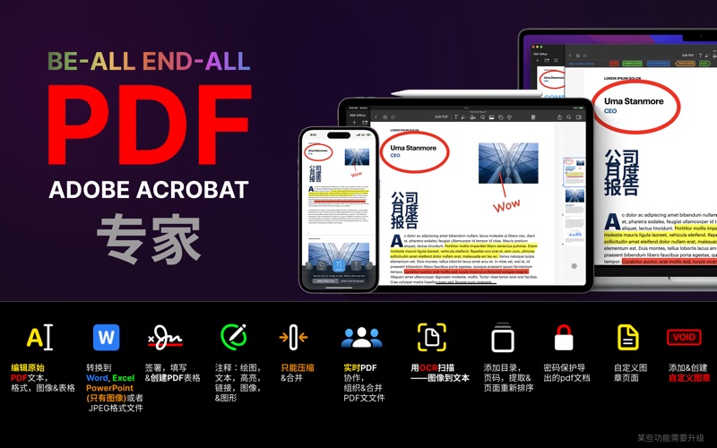 有关PDF office的介绍:旗舰版PDF编辑器和阅读器,将会大大的提升你的工作效率!它可以为你编辑PDF文本,图像和表格,填写表格,签署文档,注释,将PDF转换为Word, Excel, PowerPoint和图像格式,智能压缩PDF格式文件,实时协作,将图像扫描转换到文本格式,保护PDF文件,以及更多功能——所有这些都集合在这个强大的应用程序中! 选择使用PDF office的理由:我们的应用程序一个功能一流的套件,可以为你提供多种服务,而且它有一个时尚、人性化的界面,让你可以轻的松操控PDF文件,工作使用PDF比以往任何时候都更容易上手。使用PDF office也会改变你的工作方式——请立即下载PDF Office,亲身体验一下。 PDF office的主要功能: 编辑pdf 文件:轻松编辑原始文本和图像 修改、添加或删除文本、图像和字体 更改字体样式、大小、颜色和对齐方式 填写静态PDF表格并保存更改 文件签署:只需要点击就可以签署 保存签名以备将来使用 轻松调整签名的大小、定位 功能强大的编辑工具:编辑和增强您的pdf 文件 用手指或苹果铅笔进行手绘(苹果手笔只适用于iPad) 添加自定义文本、注释或笔记 扫描并填写PDF表格 合并或压缩pdf文件,便于共享 在pdf文件中插入和调整图片大小 转换pdf:将PDF格式转换为Word, Excel, PowerPoint &格式 文本格式、注释、标注、图纸、图像和表格的高质量转换 具有数据保护和隐私安全的服务器端转换 OCR:可以将图像转换为文本 这是高精度的新一代OCR系统 完全保密的处理过程 智能压缩:优化您的pdf 控制图像分辨率和质量 合并pdf文件或删除图像,从而让文件变小 自定义PDF表格:轻松创建表格 从常见的PDF表格对象的模板开始 添加文本输入框、复选框、单选按钮等等 图章:创建自定义图章 加强突出PDF的段落 为不同用途设计独特图章 实时协作:与他人进行共享和编辑 创建共享文件夹并邀请他人进行实时编辑 在一个地方收集反馈 注释和组织:强化您的pdf文件 可以用高亮、下划线或手写进行注释 在文件中添加注释或笔记 使用书签进行直观的导览 组织您的pdf与文件夹和iCloud同步 夜间模式:舒适的阅读体验 为延长阅读时间启用夜间模式 为方便使用,调整按钮和工具栏 更多功能升级——有些功能需要升级以后才能使用 用PDFs改变你的工作方式——请立即下载PDF Office,给你带来非同一般的体验! 为苹果 Sonoma操作系统的优化设置:通过我们更新和优化的应用程序,在最新的苹果系统上感受到近乎完美的集成和性能。