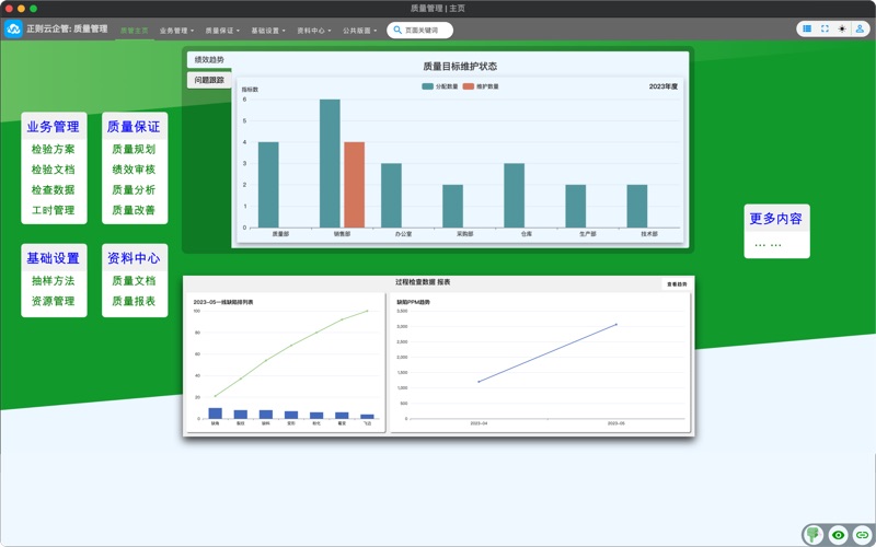 正则企管可以完成如下工作任务: 第一,供应链管理 1)订单业务,即下达、评审及维护订单等; 2)采购业务,即下达请购单和采购物资等; 3)入库业务,即物资、半成品和成品的入库管理,包含下达入库任务、生成及打印条码和标签、扫码入库等; 4)派发和出库业务,即下达发货/发料单,按照先进先出扫码出库。 第二,制造管理 1)销售规划,即销售和运作规划,销售预测等; 2)主生产计划; 3)产品Bom,即成品或半成品的材料构成清单; 4)MRP,即物料需求清单和执行计划; 5)工单管理,即派发任务、任务排产、生产报工和成本核算等; 6)生产看板管理。 第三,质量管理 1)检验业务,主要用户生成和采集质量数据,保存这些数据 制定技术要求和检验规范。 检验人员在按照不同的批次检验产品,在软件中录入检验记录。 检查人员按照特定的频次和方法检查产品和制造过程,在软件中记录检查结果。 统计人员通过软件记录员工的工作成果,以便生成工作报酬数据。 2)质量保证,宏观层面的监测和预防 针对组织的质量方针和目标,制定执行和监督部门的质量指标,按规定的周期评价和记录绩效。 执行部门在软件中按要求记录指标的运行绩效。 审核部门制定审核计划,按要求发起产品审核和过程审核,并录入审核记录。 在不同数据产品点(如检验记录,检查数据,部门绩效等)设置质量分析点,发现运行问题、提出改善对策,实施对策,最终并落实到预防工作中。 3)质量数据展示, 目的性展示,用户可以在质量报表页面中查看特定的质量绩效数据和运行数据。 滚动展示,则特定地点可以滚动展示质量数据,如用于车间的动态质量看板 第四,研发管理 1)开发管理,主要服务于研发项目管理 新建或复制项目日程模板以制定项目开发计划,形成外部日程表和内部日程表,并按内部分工制定协同任务的分配方案,为后续项目精准跟踪打好基础。 按照日程表推进项目,并在节点期限到来前及时评估该节点的任务完成情况。 软件将根据不同项目日程的到期情况决定是否给责任人发送任务提醒。 开发产品一般在第一次组装起始,导入对于产品状态的全程跟踪,直到项目完结并顺利的批量生产。期间如有任何变更,则由产品之父发布变更信息到相关的开发环节。 监测、跟踪和改善项目过程中的各类问题。 2)技术管理 服务于开发管理,制定过程控制计划和作业文件。 上传和管理工程图纸和各类标准文件。 第五,行政管理 1)人事管理,包括员工档案管理,维护员工花名册。部门管理,新增和删除子部门。 2)假期管理,制定内部的假期计算规则,按照规则申请、批准和记录假期。 第六,其他相关内容 1)物料档案,质量和研发过程项目的物料信息的新建和维护工作。 2)客户档案,组织的各类客户,将可能出现在研发过程的外部日程信息中。 3)便捷、有用的通用任务管理,可以将一些小型和微型协同任务也纳入跟踪范围。 4)内部集成有文档查看器,可以方便的浏览图片文件、pdf文件。 1, [研发管理] 开发进度表创建和修改后, 增加可选的提醒审核操作; 2, [研发管理] 开发进度表审核页面, 基础信息的选项卡优化为表格形式.