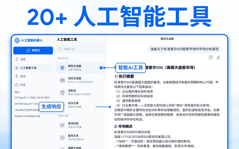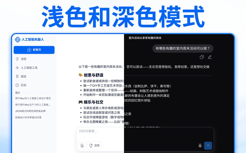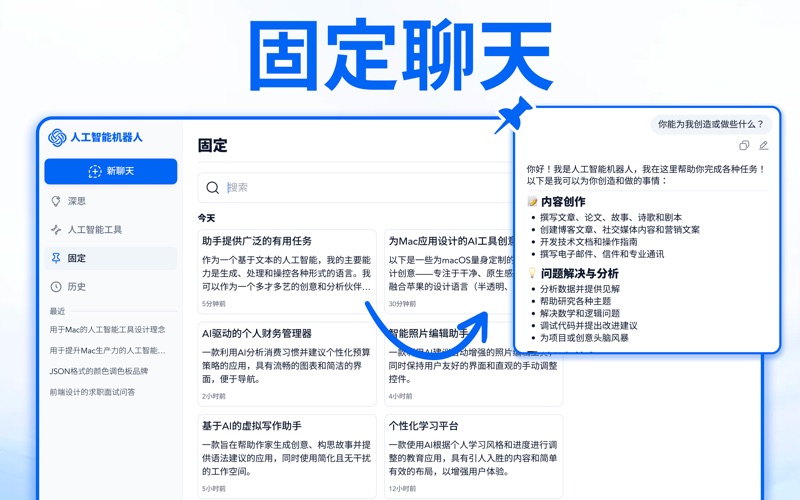 在您的 Mac 上解锁 AI 的强大力量 认识 AI Chatbot - 您的人工智能伴侣,旨在让您在 Mac 上的每一刻都更智能、更快速、更高效。 依托 ChatGPT 和 Deepseek 的先进 AI 技术,AI Chatbot 帮助您轻松完成各项任务,从回答问题、管理任务到保持数字工作空间井然有序。 主要功能 上下文聊天:享受自然、了解上下文的对话。AI 助手理解您的工作流程并适应您的需求。 深度思考(推理):获得准确的答案、深入的解释和智能的解决问题回复。 AI 工具:使用各种内置工具,旨在帮助处理日常任务 - 例如写作、研究、业务规划、头脑风暴。 置顶聊天:将重要对话置顶,以便在需要时快速轻松地访问。 聊天历史记录:随时回顾过去的对话,并从上次中断的地方继续。 借助 AI 助手,成就更多 获取准确答案和实时支持。 轻松管理日常任务和日程安排。 使用智能的 AI 驱动工具提高生产力。 保持浏览数据井然有序且易于访问。 免责声明: 此应用程序为独立开发,与 ChatGPT 或 Deepseek 无隶属、认可或赞助关系。所有对 ChatGPT 和 Deepseek 的引用仅用于信息目的。 立即下载,享受 24/7 全天候智能协助。 订阅计划: 周计划:$5.99 月计划:$12.99 年计划:$29.99 除非您在当前周期结束前至少 24 小时取消,否则您的订阅将自动续订。一旦您确认购买,费用将从您的 iTunes 账户扣除。在您订阅期的最后 24 小时内,您的账户将以相同价格被收取下一周期的费用。您可以随时在 App Store 账户设置中管理或取消订阅。 法律信息: 使用本应用即表示您同意我们的 使用条款:https://sites.google.com/view/askforhelpattaha/terms-of-use 和隐私政策:https://sites.google.com/view/askforhelpattaha/privacy-policy 您也同意 Apple 的最终用户许可协议 (EULA)。 更新的用户界面,设计更简洁、更现代 新增 AI 工具,帮助你完成日常任务