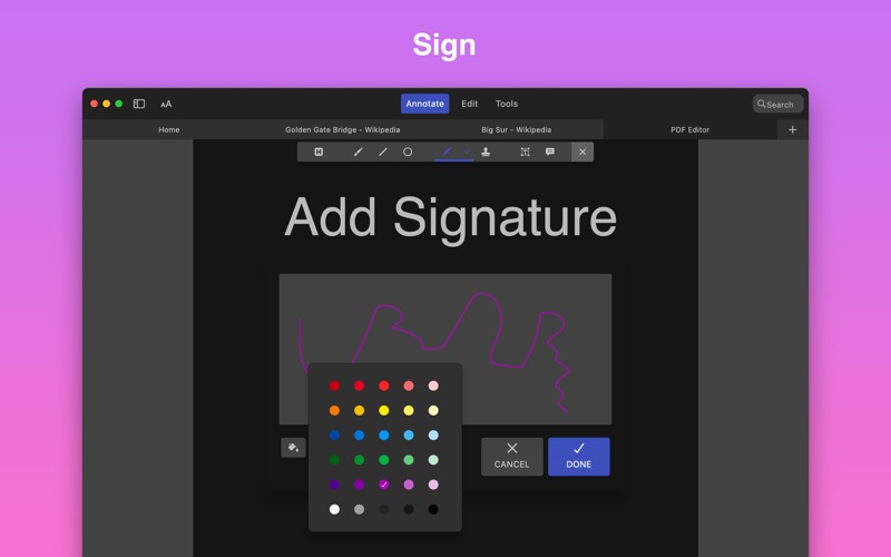 PDF Reader X 是一款功能强大、简单易用的 PDF 编辑器,他将让你能够:编辑、批注、签名、组织(添加/删除/重排/提取 页面)、合并、分拆、压缩和保护(添加密码) PDF 文件。 # 编辑原始PDF文本 PDF Reader X 提供了最好的体验,在你的Mac上编辑PDF。它将自动检测原始文本的字体、大小和不透明度,所以你可以轻松地进行编辑。 # 编辑PDF图像 使用 PDF Reader X,您可以在PDF文档中添加、替换和移动图像,以你想要的方式编辑图像。 # 编辑PDF链接 现在将文本的任何部分链接到一个不同的页面或网站是很容易的。此外,链接可以添加到图片上。 # 编辑PDF大纲 在您的PDF上创建、编辑和删除大纲项目 # 整理页面 迅速排列PDF中的页面。分割、删除、旋转、添加和裁剪PDF页面。拖放页面缩略图来安排页面。让你完全按照你想要的方式重新排列PDF页面。在一个软件中合并、组织和编辑PDF。 # 给 PDF 做注释 随心所欲地注释、标记和高亮PDF。使用 PDF Reader X,你可以注释PDF文件,添加评论,突出显示文本,并用形状、印章和绘图来标记PDF。 # 签署PDF文件 你可以用 PDF Reader X 签署你的PDF合同或发票。 # 压缩PDF文件 如果你需要用电子邮件发送你的论文,其中有大量的图表、表格、图像和大量的文本页,而电子邮件的大小非常有限,压缩你的PDF文件是解决这个问题的最简单方法。 # 保护PDF文件 如果有一个包含一些财务报表的文件,你不希望每个人都能看到或未经许可使用它。这时你就需要密码来保护你的PDF。 # 分割PDF 轻松地保存你的PDF文档的特定页面。你可以从PDF中提取一个页面或多个页面。 # 合并PDF文件 当你在进行科学研究时,需要将大量来自不同来源的统计信息合并到一个PDF文件中,整合PDF是非常有用的。 # 创建PDF文档 你可以从图像、文本文件和剪贴板中创建一个新的PDF文档。或者你可以创建一个空白的PDF文档,然后自己插入文本和图像,就像编辑Word文档一样。 查看更多关于隐私条款: https://goodpdf.io/privacy https://www.apple.com/legal/internet-services/itunes/dev/stdeula/ 有任何问题请联系我们: https://goodpdf.io/contact - [bug] The shortcuts doesn't work when editing text - nits