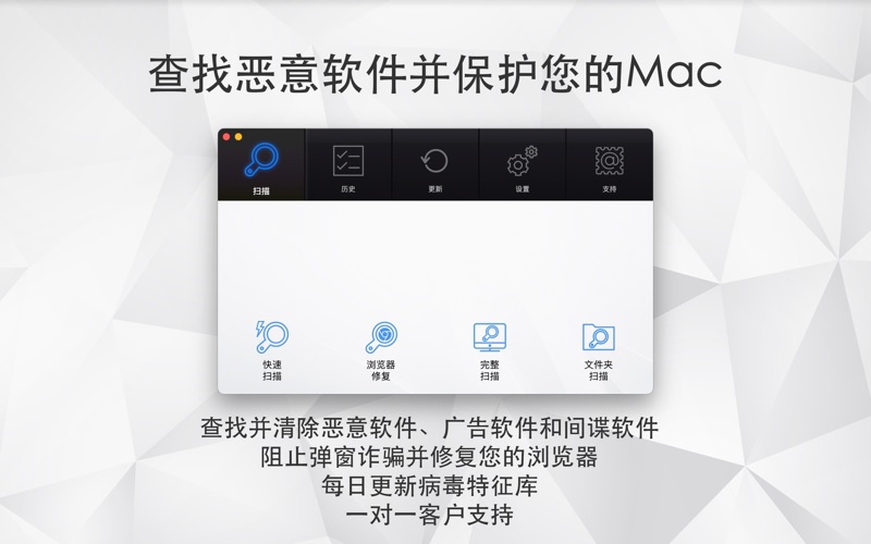 Antivirus Zap 是一款轻量级且全面的解决方案,旨在扫描和删除您的 Mac 上的恶意软件和其他恶意软件。它能够检测到已经存在于您的 Mac 上的威胁或可疑文件,并保护您免受未来的威胁。与其他防病毒程序不同,Antivirus Zap 没有臃肿的多余功能,这些功能可能会减慢您的 Mac 的速度,从而确保系统资源和内存的高效使用。 功能: - 检测并移除恶意软件和病毒,以保护您的 Mac - 快速扫描(推荐): - 检查最可能的位置:应用程序、下载、桌面等文件夹 - 根据文件数量,扫描大约需要 5-15 分钟完成 - 全面扫描: - 检查整个系统的全面扫描 - 根据文件数量,扫描可能需要一个小时或更长时间,非常适合夜间扫描 - 自定义扫描: - 选择任何特定文件或文件夹进行扫描 - 非常适合检查可疑的文件、文件夹和 USB 驱动器 - 扫描 + 浏览器恢复: - 与快速扫描相同,还通过删除扩展程序、cookie 和缓存来恢复互联网浏览器 - 根据文件数量,扫描大约需要 5-15 分钟完成 - 不仅检测 macOS 威胁,还检测 Windows 和 Linux 威胁。您可以扫描 Windows bootcamp、外部和网络驱动器中的恶意软件。 - 可以选择排除某些不太可能构成威胁的文件类型,如图片、电影和音频文件 - 还可以选择在压缩文件(zip、pkg 等)以及各种类型的文件(如 pdf、pkg、zip 等)内搜索恶意软件 - 用户友好的界面 - 频繁的数据库更新 体验最佳的 Mac 保护与 Antivirus Zap!享受实时威胁检测带来的安心,保持您的 Mac 平稳高效地运行,并加入数千名信任 Antivirus Zap 满足其安全需求的满意用户。今天就下载 Antivirus Zap,消灭那些病毒吧! 准备好体验更安全的Mac吧,使用Antivirus Zap!我们最新的更新充满了性能提升、增强的病毒检测和更时尚的界面。保持安全,消灭那些病毒!