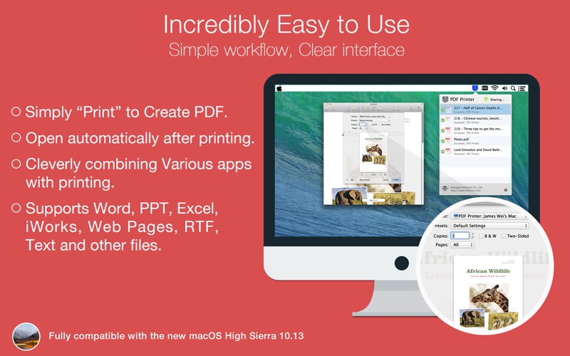 轻松将文档打印为PDF,并直接从Mac到iPhone或iPad共享,以获得更好的阅读体验! 您可以双击打开任何文档,然后点击“打印”,在打印机列表中选择“PDF打印机”,最后实时打印为PDF,它将自动打开。 PDF打印机作为虚拟PDF打印机运行,因此您可以将其添加到Mac打印系统,在Mac系统设置应用程序的打印机和扫描仪设置中找到它,并直接将任何文档打印为PDF。 PDF打印机允许您在需要时轻松地将任何文件转换为PDF文档。从数百万美元的合同到您以后想阅读的网页,只需点击几下即可保存为PDF。 该过程是100%安全的,因为转换是在Mac上本地完成的。您的文件永远不会离开它,也不需要互联网连接。 您可以从Safari轻松地将网页打印为PDF。这允许您以后以与浏览器中显示的相同的形式查看保存的页面,即使您因某种原因无法连接到互联网。例如,在Mac上进行详细分析。您还可以发送已保存的页面,而不仅仅是URL,以确保收件人在浏览器中看到它们的方式与您相同。 支持将以下格式打印为PDF: PDF、Word、Excel、Powerpoint、Pages、Numbers、Keynote、RTF、RTFD、TXT、HTML、JPG、PNG、网页。 ===升级到专业版=== 您可以立即免费创建PDF文档的前几页。如果您感觉良好,可以将其升级到我们的付费版本,直接创建包含更多页面的文档,而无需广告。这可能会让您满意,而不会给您带来费用风险。 我们正在不断开发这款应用程序,如有任何疑问、建议或问题,请随时与我们联系。 >与最新的macOS Tahoe 26.x兼容 >已知的错误修复和性能改进 ----- 有任何反馈、意见或问题吗?请通过以下方式联系我们support@flyingbee.com
