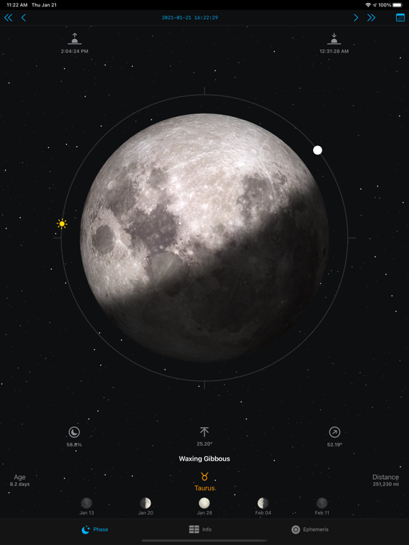 LunarSight是一款面向月球爱好者的天文学应用程序。该软件可以让您访问地球上任意日期和位置的月相、月历、星历、轨道和位置数据,以及一些占星术信息。 功能: • 选择地球上的任意日期、时间和地点。 • 月相渲染。 • 上升时间和下降时间。 • 高度、光照、方位角、年龄和距离。 • 相位条纹显示了整个月球周期以及可选择的相位。 • 准确的月球数据选项卡,包括上升时间、凌日时间和落下时间、高度、方位角、距离、相位角、远地点、近地点、升交点、降交点、赤经、赤纬、黄道经度和纬度、角直径和视差。 • 为选定的月份和地点生成准确的星历表。 • 月历显示了每天的月相以及月面的照亮比例。 • 星盘图显示了月亮和太阳当前的星座。 • 相位和日历小部件。 • 主相位视图的可配置背景视差。 • iMessages的贴纸包。 • 根据月相和其他参数,自动执行iPhone或iPad的快捷操作。 • 满月、新月和超级月亮的通知。 • 点击满月时会发出狼嚎的声音。 Subscription terms: - The subscription auto-renews at the end of each term. - Payment will be charged to iTunes Account at confirmation of purchase. - The subscription automatically renews unless auto-renew is turned off at least 24-hours before the end of the current period. - Account will be charged for renewal within 24-hours prior to the end of the current period. - You may manage your subscription and turn off auto-renewal by going to your Account Settings after purchase. Privacy policy and Terms of Use: https://applorium.com/privacy-policy-lunarsight/ Bug fixes & improvements