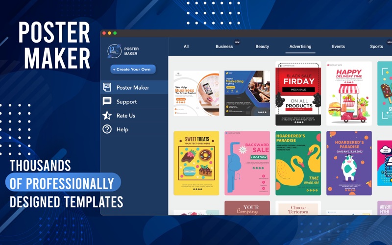 Ready to start designing posters? Make your own customized posters fast and easy with our poster maker app – no design skills needed. Get a professional poster at your fingertips. Want to create promotional posters, offer announcements, advertisement, cover photos for your shop, pip collage poster, Business poster, restaurant, offer, sale poster, collage photo poster, office and social sites? If yes then Poster Maker, Flyer Designer app for you. Poster Maker , Flyer Designer app to you can create easily select the most trending photo frames and use your own photo to add to them. Time to enjoy the best photo editing experience with this new unique Poster Maker generated app. Design your own promotional posters, offer announcements, cover photos on the go with amazing backgrounds, fonts, sticker, arts, texture, effects, and get the attention you want. Features: - Choose Templates. - Use your own picture as background - Ease to generate your concepts - Add your text with poster designs - Fine tune your poster by editing text alignment, font, color or effects. - Add wonderful stickers (specially picked for poster making) - Add your pictures from gallery - Huge collection of backgrounds - Choose color as background - Save your Design - Share on social media Not everyone can be a designer, but that doesn't mean you can't design amazing posters. This app is also useful for digital marketing, branding, marketing experts, social media marketing, graphics designing, digital printing, advertising, creating ads, designing offer announcements, cover photos for your shop, restaurant, office or social sites, typography and artwork. If you choose to subscribe, the payment will be charged to your iTunes Account at confirmation of purchase. Your trial subscription will automatically be converted to a paid subscription at least 24 hours before the end of the trial period. Any unused portion of the free trial period, if offered, will be forfeited when you purchase a subscription to that publication. From that moment and further, subscription automatically renews until auto-renew is turned off at least 24-hours before the end of the current period. Subscriptions may be managed and auto-renewal may be turned off in Account Settings after purchase. No cancellation of the current subscription is allowed during the active subscription period. Privacy: https://dezin.studio/privacy.html Terms of Use: https://dezin.studio/terms-of-use.html New exciting features are added to create your own Poster or Flyer like a professional. - All errors fixed and increased the app quality.
