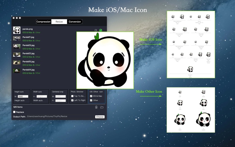 TinyPic是一款在本地压缩处理图片的工具,不用上传处理,更加保护用户信息安全。 功能: 1、支持JPG JPEG PNG BMP TIFF HEIC格式图片压缩,减少图片大小; 2、支持等比裁切图片和居中裁切图片; 3、支持图片从上到下拼接,从左到右拼接; 4、支持制作iOS & Mac 其他移动设备软件开发Icon制作; 5、支持图片格式转换. 提醒: 选中覆盖功能,则会覆盖掉原始图片,请谨慎操作或者提前备份好图片。 - fix bugs.