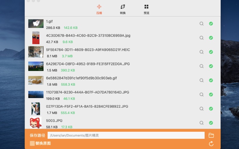 这是一款专业高效的图片处理工具,包括照片压缩,格式转换,批量修改图片尺寸等功能。支持数十种常见图片格式,无需上传网络,通过本地批量处理快速完成 主要功能 1. 图片压缩,支持jpg、jpeg、png、heic、gif 2. 图片格式转换。支持的格式 - jpg, png, gif, apng, tiff, bmp, webp, ico - svg, eps, psd, ai, pdf - raw, dng, heic 3. 支持批量修改图片尺寸。支持动图预览。包括gif,webp,apng 优化添加水印功能