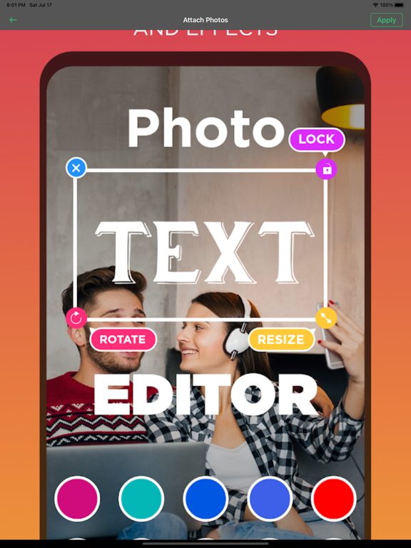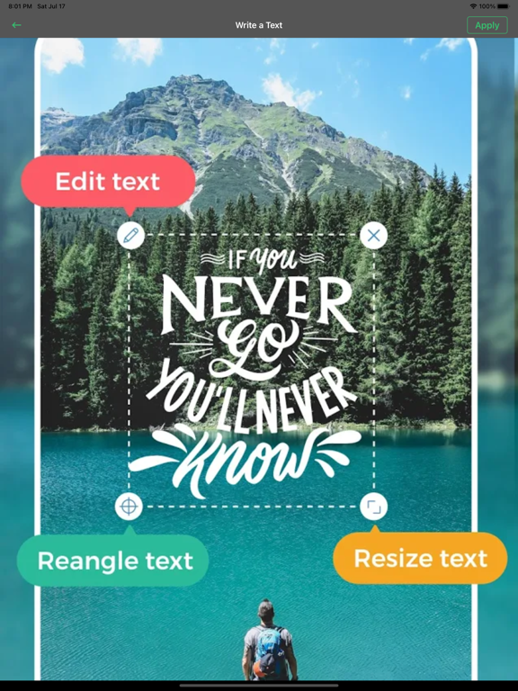 Add text to your photos, create amazing stories, design like a pro, and have fun! Hundreds of fonts, filters, designs, and more! Add texts or stickers to your images or video easily. Create beautiful quotes and text arts for your social media post, insta stories, posters, and many more. The sky is your limit to your imagination. Keep creating and posting unique, stunning design with our app. You don’t need to have a design skill to transform a simple text to beautiful photo and text design with our app. Try it now! There are so many things you can create with Tuba text editor that the sky is your limit. You should really try for yourself to experience how powerful our app is. You will be amazed at what you can create within seconds through our powerful Typomatic engine. There are a lot of things you can customize such as the fonts, colors, size, backgrounds, and more. -- FEATURES OF TUBA TEXT EDITOR – ADD TEXT TO PICTURES & VIDEOS: -- • Add text on multiple photos is just one click away. • Apply text on multiple videos on a single click. • Make unlimited text templates for videos & photos. • Create your own stunning text art within seconds. • Add text to your video or images. • Personalize the text by changing fonts, colors, styles, etc. • Add kawaii stickers or emoji to your video or pictures. • Powerful typographic engine to help you in the process. • Add autograph with adjustable pen. • Create collages easily. • Create printable arts, flyers, and posters. • Add frames and backgrounds. • Use pre-existing templates. • Use our filters to enhance the quality of your artwork. • Crop and Rotate photos from within the app. • Add time stamps, dates, or captions to your work. We are constantly adding new features and functions to our app so stay tune and keep using our app to access our newest features, fonts, styles, and a lot more. Tuba text editor is awesome for: • Instastory or Instagram feed • Quote art to post on Pinterest, Facebook, LinkedIn. • Creating content for blogs or websites. • Poster maker for your personal event. • Creating beautiful text and typographic art. • Personalize stock photos with your own design. • Add artistic text to videos or photos. • Create memes and viral posts. • Add watermark to your photos or video. • Social media post (Facebook, Pinterest, Instagram feed) • Create greetings cards from your photo • Celebrate special events. • … and many more! With Tuba Text Editor you can: • Add text to photos. • Create Instagram Story. • Make beautiful typographic text layouts. • Make Quotes (Quote Maker, Quote Creator) • Design a greeting card. • Make a meme. • Inspire your fans. • Promote an event. • Layout a business card. • Motivate your team. • Design posts for Instagram, Facebook, Pinterest, and all your favorite Social Media. • Create posters and flyers. • Create designs and logos (Logo Maker, Logo Creator). • Enhance your photos with filters and adjustments. • Create Instant photo mockups in a second. • Add your logo to all of your creations! [ Text on Photo / Add Text to Photos / Add Text to Pictures / Write on Photos / Photo Text / Caption Maker / Quote Maker / Photo Caption / Stickers / Typography / Typewriter / Typic / Typic Free / Typic Pro / Phonto] - App performance improvements