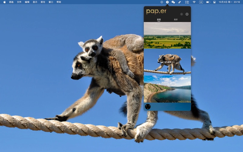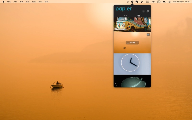 专为 Mac 设计的壁纸应用 每天享受来自全球新鲜精美的壁纸 pap.er 优雅壁纸 是多家 Mac 媒体和博主强烈推荐的著名壁纸应用,采用最新的 swiftUI 技术开发,精巧、雅致,所推荐的壁纸内容也别具一格,适合喜欢寻找壁纸来改变心情的你。 pap.er 的主要功能: - 可以完美隐藏刘海屏 - 高清 4K/5K/竖屏壁纸 - 可一键设为壁纸 - 可设置到全部屏幕 - 可自动随机更换壁纸 - 可管理自己的壁纸库 【媒体推荐】 你的 Mac 需要这样一款清新简洁的壁纸软件 pap.er https://sspai.com/post/59064 Pap.er For Mac 定时自动更换壁纸工具 https://www.macgudu.net/921.html 「pap.er」是一款极简 macOS 壁纸应用 https://macflow.net/p/1356.html Pap.er:小而美的壁纸软件「Mac 用户专属」 https://www.qikepai.cn/106/ Mac上的小清新壁纸软件-Pap.er https://www.jianshu.com/p/bdd3c493403b 1. 增加更多国语言支持 2. 修复删除本地壁纸可能存在的 bug