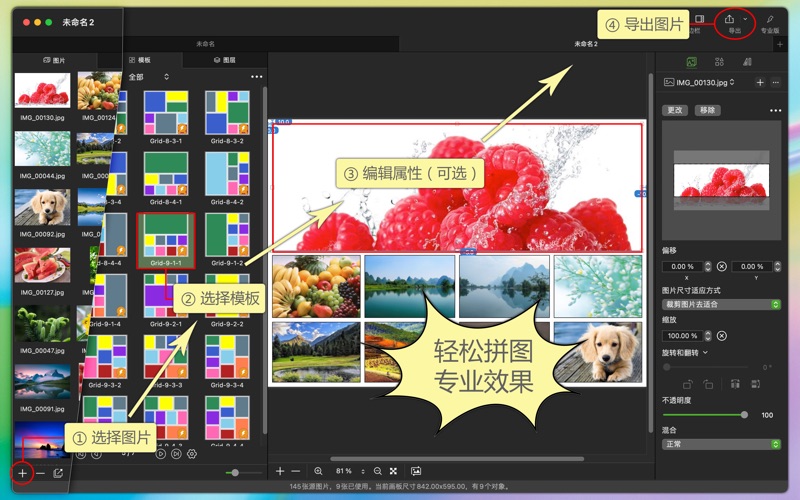 这个世界是缤纷多彩、美丽而又精彩的,怎能让它一逝而过,“轻松做拼图”能帮助您留住美好瞬间、汇聚这个世界的美。 “轻松做拼图”(Easy Collage)软件是一款轻松上手,功能强大,模板丰富,效果卓越的专业拼图软件。 支持常规拼图、拼长图等(新版本将会有更多拼图类型)。 主要功能有: 1、丰富且易用的模板: (1)模板类别和数量极其丰富,弹性布局的模板适用于任何尺寸、任何横竖屏的图片。 (2)自动匹配符合照片数量的模板。 (3)官方持续不断的制作大量精美模板,新版本将给您不断带来惊喜。 2、强大的编辑功能: (1)您可以在现有模板基础上,编辑和修改拼图,也可以从空白开始构建拼图。可以随时保存为自定义模板。 (2)一键生成指定行和列的网格拼图,且自动布局适应任何图片尺寸。 (3)可以添加图片、文字、形状等各种绘图对象。可以对绘图对象的内容、样式、形状、布局等各种属性进行设置。 (4)强大的弹性布局功能:您可以使用简单的可视化的操作,完成任意对象之间的复杂约束关系,达到灵活的布局效果。 3、可视化的轻松设计拼图,不同的模板之间实时预览拼图效果,所见即所得。 4、图片导出功能丰富: (1)可以导出任意尺寸图片,多种图片格式,自定义图片DPI分辨率,可以给图片添加版权信息等元数据信息(EXIF/TIFF/JFIF/GPS/...)。 (2)可以将不同导出参数保存为自定义预设,下次导出图片时可以快捷使用。 (3)可以将导出图片分享到:邮件、照片、隔空投送、备忘录、信息、提醒事项,和已安装的各种社交软件等。 5、工程文件功能,可以将当前工作环境保存为工程文件,以便下次打开工程后可以继续工作。 6、软件支持macOS浅色和暗黑的外观模式。 7、软件支持简繁体中文在内的多国语言。新版本将支持更多语言。 您可以在软件内通过订阅的方式获得专业版,或者一次性购买专业功能。 自动续期专业版: -- 专业版权益:(1)所有专业功能。(2)新版本新增的专业功能或高级功能。 -- 订阅周期:1个月(专业版连续包月产品),6个月(专业版连续包半年产品),12个月(专业版连续包年产品)。 -- 订阅价格:以内购申请信息为准,例如连续包月产品为每月$4.99;连续包年产品每年$29.99。 -- 付款:用户确认购买并付款后记入Apple ID账户。 -- 取消续订:如需取消续订,请在当前订阅周期到期前24小时以前,手动在App Store中账户设置中取消自动续订。 -- 续订:苹果Apple ID账户会在到期前24小时内扣费,扣费成功后订阅周期顺延一个订阅周期。 -- 隐私政策:http://www.arwer.com/Software2/PrivacyPolicy.html -- 服务协议:http://www.arwer.com/Software2/TermsOfService.html 1、新增:增加了18个新模板。 2、改进:适配 macOS 26。 3、更新:“常见尺寸”增加了部分新的设备尺寸。 4、其它一些小的修改和优化。