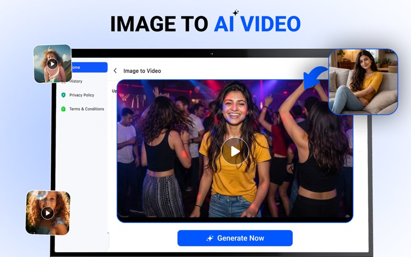 AI Video Generator – Create Stunning AI Image Maker Discover the creative power of next-generation AI visuals with AI Video Generator, a fun and innovative tool for generating artistic characters and designed for creators, designers, storytellers, and hobbyists, the app lets you explore imaginative possibilities without referencing real identities. With just a few taps, upload photos and let the AI interpret facial features, styles, and visual elements to create artistic, blended characters. The results are smooth, natural-looking morphs created purely for entertainment, creativity, and design purposes. Not merging? The built in AI Video Generator allows you to create fully original, AI generated Images that do not represent real people. Choose the style, mood, and visual direction, and generate unique characters for stories, avatars, concepts, or creative projects. The interface is simple, intuitive, and designed to help you focus on creativity. Adjust intensity, add enhancements, or apply filters everything is controlled with clean, easy-to-use sliders. Your privacy matters: all processing is handled securely, and you remain in full control of your images at all times. Key Features: Artistic AI Video Generator with smooth, creative blending AI Video Generator for producing unique, AI created, non real identities multiple images for fun and imaginative results Adjustable blend strength, detail enhancement, and filters High resolution outputs suitable for personal and creative use Simple, clean interface with intuitive sliders Ideal for creators, designers, writers, and hobbyists Private, secure, and user-controlled processing Whether you're designing characters, creating avatars, brainstorming ideas, or simply exploring creativity, AI Art Creator & Video Generator gives you a safe and exciting space for artistic expression. "The app uses AI to artistically blend facial features for creative purposes only." Note: Your subscription will automatically renew unless auto-renew is turned off at least 24 hours before the end of the current period. Renewals will be charged at the same rate you were originally billed. You can manage or turn off auto-renew in your App Store Account Settings. For more details, please review our Terms of Service and Privacy Policy. Terms & Conditions: https://codebyapps.blogspot.com/2025/12/terms-conditions.html Contact Us: https://codebyapps.blogspot.com/2025/11/contact-us.html Privacy Policy: https://codebyapps.blogspot.com/2025/11/privacy-policy.html * Meet our best API models, featuring AI Photos, AI UGC Ads, and improved text-to-video performance. * Enhanced Video Effects: Elevate your projects with stunning new effects designed to captivate your audience. * Multiple Script Formats: Pick from a variety of script types to perfectly match the tone and style of your video. * Fresh Video Styles: Discover new, eye-catching video styles that bring your ideas to life like never before.