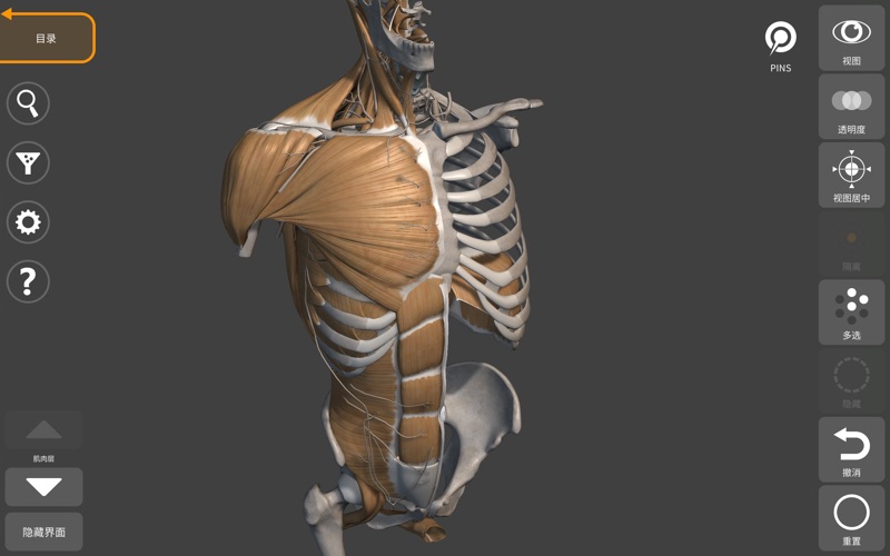 是为任何艺术家所准备的配合最好的艺术解剖图书籍使用的一件必备工具。 非常详尽的三维解剖学模型 • 骨骼系统(免费) • 肌肉系统(应用内付费) • 准确的三维建模 • 具有高达4K的高分辨率质地的骨骼表面 简单直观的界面。 • 在三维空间旋转和缩放每个模型 • 按区域对每一个结构进行清晰和直观的划分 • 肌肉按层分组,从浅表一直到最深部 • 多种或单一模式下的肌肉层可视化 • 可隐藏每个单独的骨头或肌肉 • 用于显示或隐藏各个系统的过滤功能 • 智能旋转,自动移动旋转中心以实现更轻松的导航 • 交互式大头针实现每一个解剖细节相关的术语可视化 • 隐藏/显示界面,对于智能手机上的使用非常理想 • 肌肉的说明(产地,插入,动作), 只有英文 • 画, 相片 多语言 • 提供 12 种语言的解剖术语和界面:拉丁语、英语、法语、德语、意大利语、葡萄牙语、俄语、西班牙语、中文、日语、韩语和土耳其语 • 可直接在应用的界面上选择语言 • 可同时使用两种语言显示解剖学术语 • 小的错误修复
