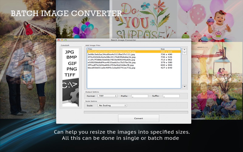 ◆◆◆时间限量特别优惠(注册9.99美元) ◆◆◆ 批量图像转换器是一款非常高效的批量图形转换工具应用程序,它能将 BMP, JPG, GIF, PNG, TIF, JPEG, RLE, DIB, PCD, DXF, ICO, WMF, TIFF, TGA, PCX, DCX, EMF, JIF, JPE, JFIF, EPS 等文件转换为 BMP, JPG, JPEG, GIF, PNG, PCX, TGA, EPS, TIF, TIFF 等文件。 你还可以在转换时设置例如调整大小, 翻转, 镜像, 添加文本, 修剪, 旋转, 灰度等等参数, 并且软件带有许多滤镜效果; 也可以做为图形浏览器.。 主要特点: 1。支持拖放功能。 2。支持批量转换功能,支持批量重命名。 3。更改输出设置图像文件的名称上加前缀或后缀。 4。自动放大至适合, 自动缩小至适合, 锁定缩放。 5. 支持将多个PNG或JPG文件转换成一个多页TIFF文件 6. 保留所创建文件的日期和时间 我们很高兴能收到您的反馈意见。但是我们不能在Mac App Store中回复您的意见。如果您有任何疑问,请通过邮件与我们联系。谢谢你! ◆◆◆联系方式 ◆◆◆ 如果您有任何问题,请给我们发电子邮件cokesoft@gmail.com bug fix for 10.12