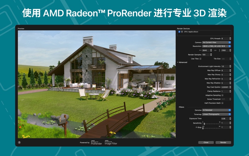一款出色的家居设计 App,让任何人都能成为设计师。使用 Live Home 3D Pro,您可以创建精细的平面图布局、3D 家居设计可视化效果,规划花园并处理周围的景观 – 一切皆有可能。 平面图、建筑物和地形: • 创建精细的 2D 平面图布局。 • 在 2D 平面图视图下绘制时实时查看墙壁、天花板和地板尺寸。 • 无限楼层:可以创建多层建筑物,甚至是摩天大楼。 • 从头设计或使用现成的房屋和内饰设计样本(例如厨房、浴室、客厅等)。 • 使用地形编辑工具进行景观设计:在您的房屋周围创建复杂的地形,铺设道路和车道,并规划您的花园或后院。 • 从现成的屋顶模板(12 个屋顶和 16 个天窗)中进行选择,或通过编辑屋顶的各个分段来创建任何形式和复杂度的屋顶,对屋顶进行自定义。 • 提供显示墙壁和屋顶侧视图的 2D 立视图,这是处理开洞、壁龛和墙板的完美工具。 • 使用多用途建筑物块工具创建门廊、自定义立柱、横梁,甚至家具。 对象和材料: • 添加并移动家具和其他对象(5,000 多种物品),并应用实体材料(提供 3,000 多种材料)。 • 访问可以从 Trimble 3D Warehouse 导入的数千个免费模型。 • 从其他应用程序以最流行的格式(Trimble SketchUp™、COLLADA、FBX、OBJ、USDZ、3DS 等)导入 3D 模型。 • 使用材料编辑器创建复杂的自定义材料,控制其纹理和发光属性。 照明设置: • 设置真实地理位置、一天中的时间和云量来获得自然照明。 • 调整整个房屋的灯具,获得真实照明场景。 • 使用光源编辑器为您的项目创建自定义灯或实现最佳照明。 查看和共享项目: • 漫游您的 3D 内饰设计。 • 从不同角度创建项目的俯瞰视频和 3D 渲染。 • 在 macOS、iOS、visionOS、iPadOS 或 Windows 设备之间无缝共享您的项目。 导出: • 将项目的 2D 平面图导出为 PDF,将项目的 3D 视图导出为高分辨率图像。 • 将整个房屋设计或多个对象导出为 USDZ、glTF、SCN、SCNZ、FBX 或 OBJ 格式。 • 利用离线、由 AMD Radeon™ ProRender 或 Cycles 驱动的光线追踪渲染技术,获得具有真实感的设计视图 (无限量渲染器)。 • 获得影片的超高清导出质量和静态照片的 360° 全景图与高分辨率 (16,000 x 16,000)。 • 创建立体 3D 视频、360° 视频、立体 3D 360° 视频和 360° 全景 JPEG 图像。 备注:在 Mac 版 App 中进行的 App 内购买不会应用或转移到该 App 的 iPhone/iPad/Apple Vision 或其他平台版本。 您可以在 App 的免费版本 (Live Home 3D) 中试用上述大部分功能。Live Home 3D Pro 的功能相当于 Live Home 3D 的功能外加购买的 Pro 功能。 • 修复了一些错误并改善了稳定性。