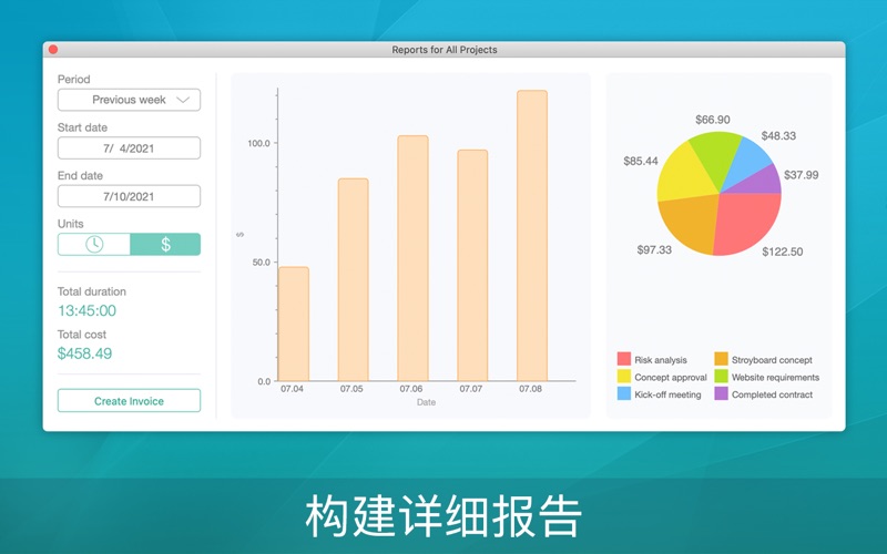 Chrono Plus 是一款具有许多便利功能的方便的任务管理器和时间跟踪工具。它是任何按小时计费的自由职业者或专业人士的必备应用。它具有时尚、直观的界面,可用于管理任务、计算成本和开具发票。Chrono Plus 也可用于 iPhone 和 iPad,可让所有数据在计算机和移动设备之间保持同步。 主要功能: • 轻松快速地创建任务和子任务 • 通过颜色标记和搜索提供更好的导航 • 跟踪任务和项目的完成情况 • 时间和成本跟踪 • 多种计时器显示模式:总计、今日、上次间隔 • 闲时检测 • 多个小时费率 • 内置发票生成器(格式为 MS Excel) • 能够通过电子邮件将发票发送给客户或将其保存到外部应用 • 使用图形和图表实现项目可视化 • iPad、iPhone 和 Mac 之间的完全同步 • 也可用于 iPhone 和 iPad • 针对配备了 M1 的 Mac 进行了优化 * 与 iOS 设备同步需要安装 iOS 版本的 Chrono Plus Pro(单独销售)。 • Improved synchronization • Minor fixes and improvements