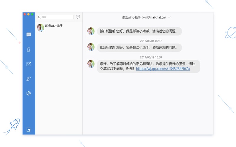 邮件办公上「邮洽」,基于母公司三五互联二十余年企业服务经验,我们专注为职场邮件人士打造专属的邮件办公沟通工具,让邮件管理更便捷、工作交流更高效、移动办公更快乐。 **业内首创智能收件箱,自动置顶重要未读邮件,结合稳定、实时的新邮件提醒,重要信息绝无遗漏! **打通邮件与聊天,邮件事项需要讨论,无须来回邮件,一键发起单聊/群聊,干脆利落,快速达成决议! **只需简单划动手指,即可轻松管理您的所有邮箱,语音轻松写邮件,一站式完成工作交流,畅享移动办公! 「以下特色功能让邮洽备受各界邮件办公人士青睐」 >>支持所有邮箱 - 支持腾讯QQ/网易163/126/yeah/新浪/搜狐/阿里/雅虎139/189/Gmail/hotmail/foxmail/outlook等各类个人邮箱账号。 - 支持三五互联/腾讯/网易/阿里云/263/中资源/亿邮/新网/万网/中企动力/coremail等各类企业邮箱账号。 - 完美实现国内直接登录Gmail,且独家支持Gmail新邮件稳定推送。 - 一键登录,智能配置,一站收发,流畅切换,随心管理。 >>业内独创智能收件箱 - 自动识别重要邮件,重要未读的邮件将自动置顶,客户/领导来信不再错过。 - 联系人详情中手动将重要联系人「设为重要」,Ta发来的邮件将默认判为重要。 - 独家专利智能算法,结合大数据和机器学习,用得越多,它越聪明。 >>聊天多端同步,引领办公轻沟通 - 只需知道对方邮箱地址,即可发起聊天,内外交流沟通无阻。 - 邮件事项需要讨论,无须来回答复,一键发起单聊/群聊,效率倍增。 - 对方没有安装邮洽,消息将自动集合转为邮件发至对方邮箱。 >>智能管理,轻松搜索 - 所有邮件向左轻扫即可设为「待办」,待办邮件将聚合到列表顶端。 - 支持搜索服务器上的邮件,按照主题、收件人、发件人精确搜索。 - 智能突显常用联系人,自动记录往来联系人,同步企业邮箱组织架构。 - 联系人详情界面查看历史往来邮件,轻松语音写信给对方。 >>二十年企业服务经验 - 邮洽由上市企业三五互联控股,基于其二十年企业信息化服务经验精心打造。 - 十年实时Push推送技术积累,确保新邮件/消息稳定、瞬时提醒,绝不遗漏。 - 完美接入三五互联OA办公系统,轻松搞定事务审批、外勤签到、考勤公告等事项。 - 全方位加密保障,支持指纹解锁和手势密码,时刻保护您的商业及个人隐私。 【我们在这】 专注邮件办公的邮洽,珍视每位用户的建议。如在使用中遇到任何问题,欢迎随时发送反馈邮件,我们会即时跟进并一一解答。 邮箱:580@35.cn 登录密码输入框优化 修复已知问题 **我们,在这 - 问题反馈:580@35.cn
