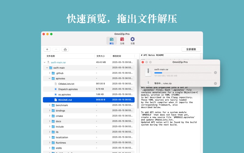 一款超级解压缩工具,支持解压 RAR, 7Z, ZIP, TAR,GZIP, LHA, BZ2, XZ, ACE, LAMA, XAR, APK, SWF, EXE, LZH, CBR, ISO, PMA, CAB, RPM, Z 等 100 多种格式。 ### 主要功能如下: - 支持解压任意格式的压缩文件。 - 双击压缩文件进行预览或直接解压,可自定义配置。 - 压缩文件支持无限嵌套预览。 - 压缩包支持选中文件再压缩。 - 预览时支持直接拖出文件解压。 - 支持批量解压缩。 - 支持分卷压缩包解压,保证分卷的压缩文件在同一目录即可。 - 支持压缩格式 zip 和 7z。 - 支持加密压缩,分卷压缩。 - 支持压缩、解压缩过滤文件自定义。 - 支持记录已预览过的压缩文件,便于下次打开继续操作。 有任何问题或建议,欢迎联系我们:gmshrekhelp@outlook.com - 修复了一些已知问题。