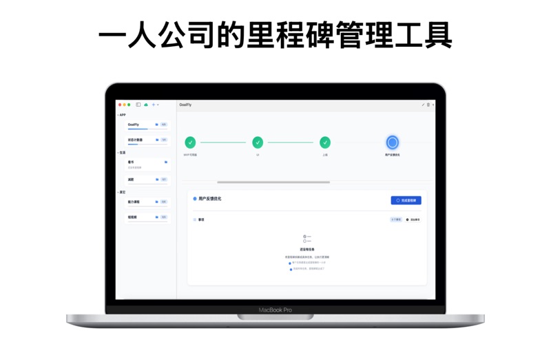 核心价值:将大目标分解为可管理的里程碑 特色功能:时间线可视化、任务拆解、进度提醒 技术优势:iCloud 同步、多设备协作 适用人群:个人目标管理、项目跟踪、团队协作 对深色模式做适配