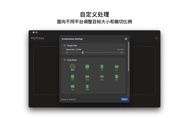 拖拽即用,严格匹配平台规范 - 拖入图片/文件夹,自动压缩到指定大小以内(默认3MB,可调) - 强制裁剪1:1主图/2:3详情页等标准比例 - 输出到原目录下的"已压缩"文件夹,保留原始文件 - 针对mac系统优化,压缩性能超网页工具,可本地离线运行 适用 - 手机拍摄素材转电商可用图片 - 淘宝/拼多多/京东/微店/抖音商品主图/详情图批量处理 进一步优化交互体验