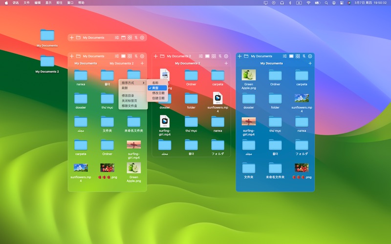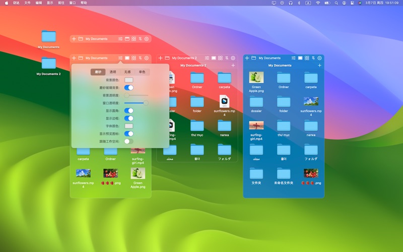 这是一个小巧、高效、省时的桌面文件助手 1.可以建立多个标签,将各处文件映射到桌面显示。 2.可以支持名称、时间等多种方式进行分类显示。 3.预览文件内容,让你快速识别到你要的文件,双击即可打开它。 4.拖动文件可以到任何地方或应用程序打开它。 5.丰富的界面样式定义,可以彰显自己的个性。 6.置顶显示按钮,让文件盒快速出现在你面前。 7.完美兼容多显示器切换显示。 欢迎提意见! 【联系我们】 E-mail: macostool@qq.com B站: https://space.bilibili.com/404684311 修复了一些问题