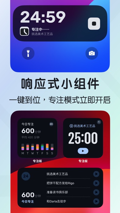 厌倦了手机无休止的打扰,难以沉浸于真正的专注之中?是时候迎接改变,让专注宝成为你的专注力守护神了! 想象一下,每天被手机牵引,平均滑动上百次,耗费数小时,这样的生活是否让你感到疲惫且低效?专注宝,正是为此而生,它承诺给你一个纯净、高效的专注空间。 专注宝的特色功能: *智能限屏,专注无忧:一键管理屏幕时间,自动屏蔽干扰应用与网站,让你在设定的专注时段内,享受零打扰的沉浸式工作体验。 *动态小部件,动力满满:直观展示你的专注进度与成就,无论是项目里程碑还是日常小目标,都能激发你的持续动力。 *数据洞察,智慧提效:深度分析你的工作习惯与效率,通过图表呈现,助你发现提升空间,做出更加明智的时间规划。 *舒适暗黑,护眼更专注:专为夜间与低光环境设计,减少屏幕刺眼,保护视力,同时提升你的专注度与工作效率。 *白噪音海洋,宁静致远:在嘈杂环境中,一键开启白噪音,营造私人静谧空间,让你的思绪更加清晰,工作更加高效。 *待机亦专注,效率不间断:即便手机待机,专注宝也能持续维护你的专注状态,确保高效工作随时待命。 *个性化场景,随心所欲:根据你的不同需求,轻松定制专属专注模式,无论是紧张工作、高效学习还是休闲放松,都能找到最适合你的高效状态。 专注宝是一款集智能、高效、个性化于一体的专注力提升工具。它不仅仅是一款应用,更是你追求卓越、实现目标的得力助手。现在就下载专注宝,开启你的高效专注新时代,让每一次努力都更加专注、更加高效,成就更加出色的自己! 使用条例: https://www.apple.com/legal/internet-services/itunes/dev/stdeula 新增功能: 1.现已适配 iOS 18 控制中心新特性。用户可以通过控制中心快速锁定干扰应用,帮助您更好地集中注意力,提升工作与学习的效率。 2.Apple Watch 支持:新增功能支持在 Apple Watch 上保持专注,确保您在任何时刻都能避免干扰,提升专注力。