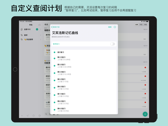 年轮是一款基于「艾宾浩斯遗忘曲线」理论,通过设定查阅计划来定时复习卡片,最终提升记忆效率的 App。 年轮能胜任: - “我重做了数学错题册的第25页”,提醒我定时回顾错题。 - 长篇文章,就像完形填空一样,隐藏关键字,让我更好的记住关键点。 - 将重要内容隐藏起来,方便我进行回忆。 年轮支持自定义查阅计划、高亮文本、数学公式、文本挖空和卡片块隐藏等功能。专为爱复习的童鞋打造,我们的目标是成为学习旅程中的利器。 年轮中包含“全部”、“今日”和“计划”页面,总览您的卡片和规划您的复习。 在年轮中添加知识卡片,年轮会在您设定的查阅计划的复习时间点提醒您进行复习。默认可以创建艾宾浩斯查阅计划,当然您可以针对您的需要,来创建自定义查阅计划。 查阅计划还支持暂停复习,比如为一场考试来设定查阅计划,考完完成后暂停复习,所有使用查阅计划的卡片都不会再提醒您复习了。 你可以通过文件夹、标签和颜色标记为卡片进行分类。还可以为标签/文件夹设定查阅计划:在标签/文件夹视图中创建的卡片会自动使用对应的查阅计划。 # 年轮 希望您能通过年轮,记忆您所需要以及的知识,通过多次复习不断的巩固、加深记忆,不会忘记。 高效率地规划每张卡片的复习时间,提高记忆效率。 # 功能 - 使用卡片块来编辑卡片内容,支持文本、代码、数学公式、链接、图片和附件。我们还会不断地加入新的卡片块,来更方便地记录记忆资料。 - 创建多个查阅计划,根据自身特点来规划复习时间。 - 通过文件夹、标签、标记等多种方式分类您的卡片。 - 无缝的 iCloud 同步功能,我们尽最大努力来保护您的数据安全。 - 备份/恢复功能。 # 订阅 年轮采用订阅模式,在试用期可以免费试用所有功能。试用期间,最多可创建20张卡片,超过数量限制后,无法创建、编辑卡片。正常的复习与通知功能不受影响。 欢迎试用,不需要订阅和付费。 如果在试用期间,年轮对您有帮助,请订阅来支持我们以及后续开发。 订阅价格可能因地而异。订阅将通过您的 iTunes 账户进行扣款。 订阅会自动续订,除非您在当前订阅期结束至少 24 小时以前停止自动续订。当前订阅激活后不可取消。 购买后,在 App Store 的账户设置中可以管理您的订阅。您购买订阅服务时,任何未使用的免费试用期立即失效。 订阅过期后年轮会进入试用模式。 # 需要帮助 您可以通过 hello@yeseni.today 与我们联系,我们期待您的反馈! 使用条款:https://yeseni-today.github.io/mematom-resources/terms-of-use/ 隐私协议:https://yeseni-today.github.io/mematom-resources/privacy-policy/ 此App备ICP许可证:皖ICP备2023019962号-1A 此版本包含了错误修复与体验优化。