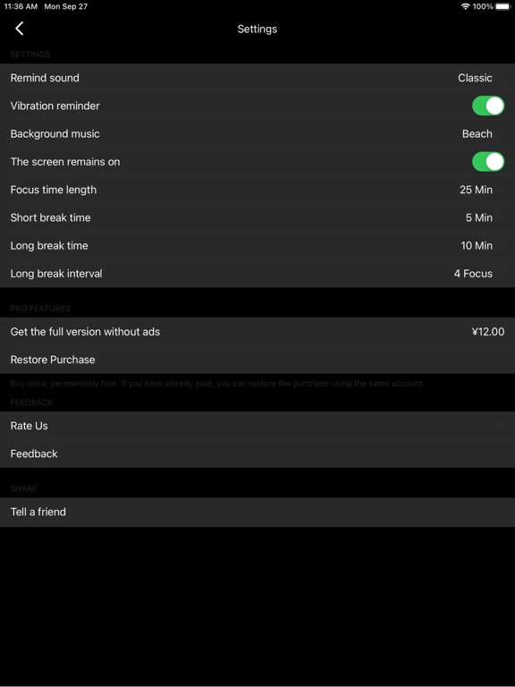 番茄钟是一款基于番茄工作法,帮助你专心投入工作、学习的App。当你想开始专心投入时,可选择一种环境,伴着海滩、火车、雨天、篝火、乡村蟋蟀声,你会轻松的专心投入。 主要功能: - 基于番茄工作法,每次专注25分钟,间隔休息5分钟。 - 支持自定义时长,方便的设置专注时长,休息时间。 - 设置计时结束后提醒,多种声音可供选择。 - 计时器界面醒目显示,一目了然。 - 专注时,APP支持后台运行。 修复了启动过程中可能发生的崩溃问题。