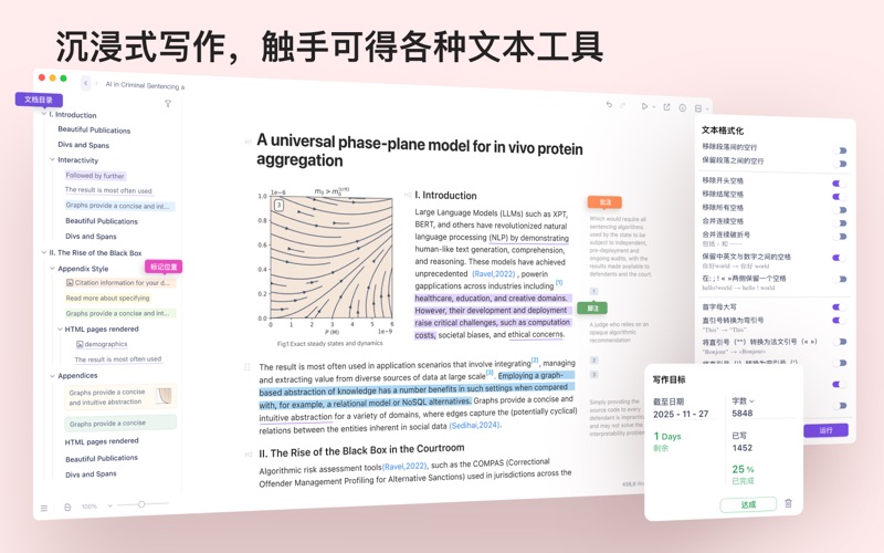 Lattics 专为作家、艺术评论、独立博客、大学生、科学研究、工程技术、财务分析、金融投资等高知领域从业者打造,大幅提高写作小说、学术论文、分析报告、项目报告以及知识学习的效率 Lattics 的产品设计理念遵从了人类大脑发散式思考和脉络式组织信息的原理,提供了沉浸式、多视角、多维度、相互联接的信息呈现方式,激发创作效率 使用过 Lattics 的用户,普遍认为无论写作效率,还是写作的数量与质量,都远远超过其他同类软件 特色功能概览: - 时尚设计:功能非常繁杂且完备,但却保持了优秀的现代、简约和时尚感 - 可视化写作:可在项目大纲、卡片库、图谱、时间线中直观化的构思和写作 - 非线性写作:可分章节,分卡片写作,可随时灵活组织与调整内容结构 - 富编辑:支持文字样式、行内图片,行内公式、脚注、批注、高亮、多拦排版等,支持文本格式化 - 性能强大:单篇文章可达到 10 万字不卡顿 - 块级元素:使用语法 “/ ” 可插入 标题、段落、列表、图片、分割线、代码块、表格、数学公式,化学公式、参考文献等 ,可拖拽移动块元素位置 - 样式模版: 可精确设置文档中的各种元素样式,包括字体、字号、对齐、缩进、行间距、段间距、列表序号、颜色、边框等,可保存样式模版复用 - 离线优先:内容数据默认存储在本地,并不上传任何云端,保护数据隐私和安全 - 第三方同步:支持 WebDAV 同步协议,可自己搭建云存储服务,最大化保护数据安全 - 内容互联:使用语法 “@ ” (引用),“[^ ” (脚注),可在文章、卡片、PDF、以及网页之间建立双向连接,可通过扩展信息中的前向链接和后向链接回溯 - 可交互图表:表格可一键在多种模版之间切换,也可一键创建各式图表,如饼图、堆叠图等,表格可输入数学公式,引用文献等 - 文献引用:自动编排引用编号,自动生成参考文献列表,可一键切换 CSL引用样式 - 交叉引用:支持图片、表格的交叉引用,自动编排序号,可自定义引用标题 - 数学公式 :提供常用算符,可轻松撰写长篇 LaTex语法,支持化学公式和分子结构,支持对齐线,自动换行,代码行号,可自由调节渲染区大小,易用性远超 MathType, ChemDraw - 目标设置:可为文章和项目设定写作目标,可查看每日写作字数和任务完成进度 - PDF 对照翻译:支持 92 种语言的PDF 文档翻译,包括扫描版PDF,可保持原文排版,左右双屏对照,可摘录和高亮标记,可导出并保存翻译结果 - OCR:可精准识别并提取 PDF 文档中的复杂表格与数学公式 - Zotero 集成:安装官方插件后,可拖拽或复制 Zotero note 到 Lattics 中,并自动获取其文献数据 - 浏览器插件:支持 Chrome,Edge 插件,可摘录网页内容,或将在线 PDF 保存至 Lattics,并自动携带文献数据 - Web App:可在 Web app 中打开各种网站应用,比如 Notion,DeepSeek, Flomo 等,可将其中的内容拖拽至 Lattics 中 - 闪卡复习:支持填空、选择、问答三种闪卡题型,支持艾宾浩斯记忆算法,根据其算法复习闪卡知识 - 双屏对照:可同时打开左右两个编辑器,分别对两篇文章进行对照编辑 - 顺序阅读:可以选中部分文章,启动顺序阅读,便于总览检查 - 层级标签 / 层级项目:支持 Tag/Subtag 的层级标签,项目也可包括多个层级的子项目 - Markdown:自动解析 MD 常用语法,渲染为所见即所得的样式; - 高品质导出:可带封面、目录、层级标题导出,支持多种页码,页眉页脚,可导出为 PDF,Word,图片,Markdown,Txt 文件; - 多窗口:项目、文章、卡片、卡片库、图谱、时间线等均可在独立窗口中打开,灵活布局,构成个性化的工具组合 - ... 还有很多特色功能 ----------- 自动订阅的说明 ------------- Lattics Pro 月度会员: 28 元 / 月 Lattics Pro 年度会员(优惠期): 168 元 / 12个月 Pro 会员订阅的自动续费会在会员到期前的 24 小时内自动从 iTunes 账号扣费; 你可以在购买后前往Apple ID账号设置管理订阅并取消订阅,具体路径是:“设置”-> Apple ID -> 订阅 服务协议:https://lattics.com/zh-CN/terms_of_service 隐私政策:https://lattics.com/zh-CN/privacy-policy 优化: 【表格】增强了表格的数据读写可靠性,避免编辑、复制粘贴、合并文章时会丢失内容 【表格】复制 AI 回答的表格内容时,可以完美适配 【文章导出】解决某些情况下 Word,PDF内容导出不完整的问题 【文章导出】解决使用 APA 模版时导出 PDF 的问题 【文章导出】改进 Markdown 导出时的样式一致性与空行保持问题 【编辑器】解决复制网页图文内容时的bug 【编辑器】支持在 Lattics 中复制的数学公式可以以 LaTex语法形式粘贴到其他软件中