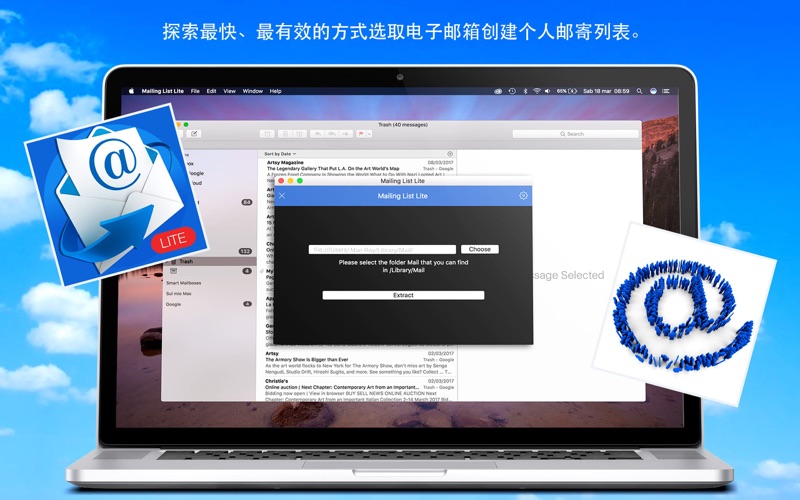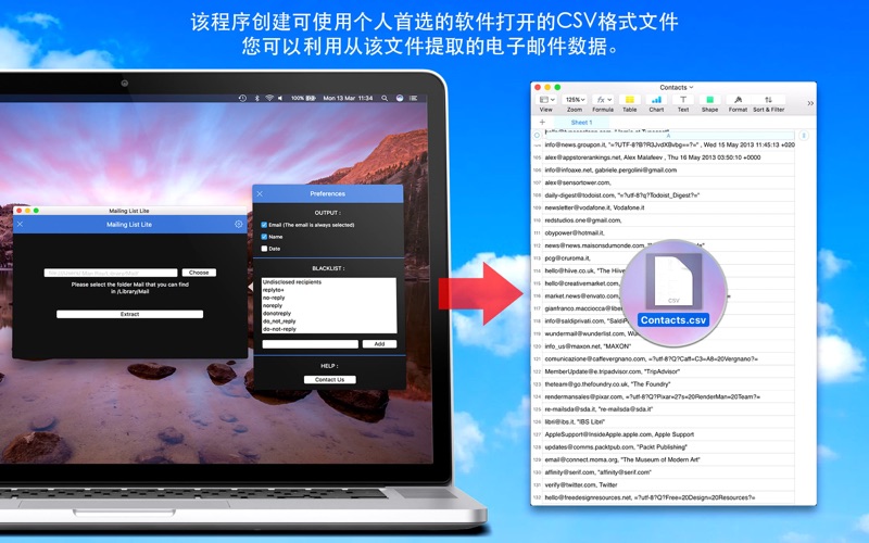 不要错过我们在 Mac App Store 上的新应用! 发现提取电子邮件地址并创建您自己的邮件列表的最快、最高效方式。 无论您有 10 封还是 10,000 封邮件,都可以提取其中的邮箱地址和联系人姓名! 请注意,Lite 版本限制为 200 个联系人。 该程序会生成一个 CSV 文件,可通过您喜欢的软件打开并使用提取的数据。 Internal Improvements and bug fix