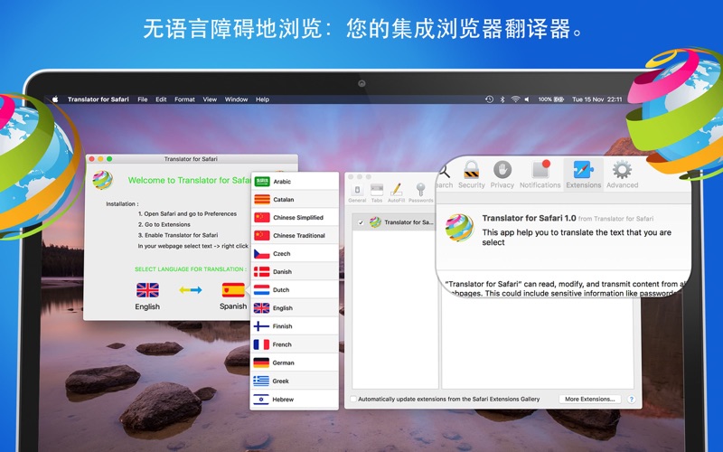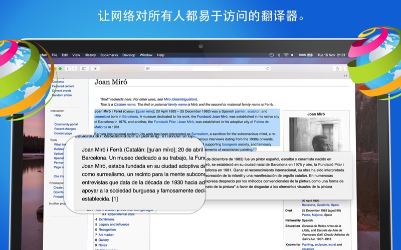 直接从浏览器即时翻译任何网页! 让网络对所有人都易于访问的翻译器。 无语言障碍地浏览:您的集成浏览器翻译器。 You may purchase an auto-renewing subscription through an In-App Purchase. • Auto-renewable subscription • Monthly with 3-Days Free Trial , Annual with 3-Days Free Trial • Your subscription will be charged to your iTunes account at confirmation of purchase and will automatically renew (at the duration selected) unless auto-renew is turned off at least 24 hours before the end of the current period. Privacy Policy: https://sites.google.com/site/privacycoldat/ Terms of use: https://www.apple.com/legal/internet-services/itunes/dev/stdeula/ Improvements in the translation system