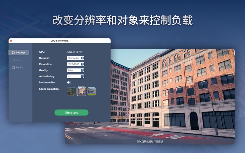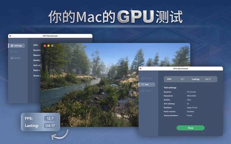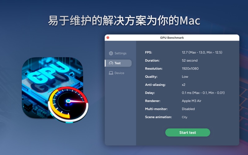 GPU基准测试是一个强大的工具,用于测试你的图形处理单元的性能,允许您添加各种对象到图形卡和评估它如何处理负载。 在应用程序窗口中轻松进行所有必要的更改。 图形处理器检查 快速准确地确定Mac的FPS,以了解系统如何处理图形任务。 广泛的自定义选项 利用众多设置自定义体验: -更改测试持续时间 -品质 -决议案 -对象数 该程序还支持多显示器和抗锯齿功能,以帮助准确评估性能在不同的显示器在同一时间。 新的测试场景 探索一系列动态测试地点,如森林、城市或体育场。 这些场景提供了各种图形工作负载,因此你可以查看显卡如何处理不同类型的内容,从而提高整体测试准确性和个人用户体验。 方便显示资料 使用全屏模式的能力使您可以在不受干扰的情况下监控测试结果并轻松实时查看性能变化。 私隐政策:https://anycasesolutions.com/privacy 使用条款:https://anycasesolutions.com/tos 认识我们的新版本和更好的版本!我们的团队加入了一些魔法并修复了一些非常令人恼火的错误。