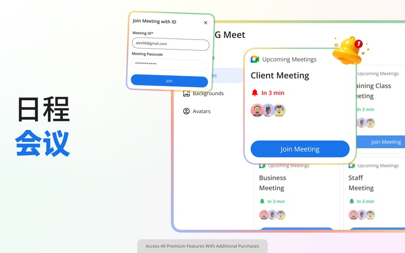 App For GMeet 是您组织和提升虚拟会议的必备工具。安排会议、设置及时提醒,并使用精美的图片和视频背景个性化您的会议,所有功能集中于一个易用应用中。 应用亮点 简便排程:快速创建和管理会议,无需繁琐操作 会议提醒:在每次会议前收到通知,确保您始终准备就绪 一键加入:通过应用界面直接加入已安排的会议 自定义虚拟背景:可从自然、抽象、专业等类别中选择高质量图片或视频背景 简洁直观界面:清晰设计便于导航、排程和浏览背景 订阅方案 每周:每周 1.99 美元 每月:每月 2.99 美元 每年:每年 14.99 美元 重要信息 本应用在月度和年度订阅计划中提供 3 天免费试用。 订阅会自动续费,除非您在当前计费周期结束前至少 24 小时关闭自动续费。 购买时将立即向您的 iTunes 账户收费,并在订阅续费前 24 小时内再次收费,续费价格与原订阅相同。 您可以随时通过 App Store 账户设置管理或取消订阅。 第三方声明 本应用独立开发,与 Google Meet 或 Google LLC 无任何隶属、认可或赞助关系。所有对 Google Meet 的引用仅用于描述性和信息性目的。 使用此应用即表示您同意以下条款: 我们的《使用条款》(https://sites.google.com/view/zainumerapps/terms-of-use) 我们的《隐私政策》(https://sites.google.com/view/zainumerapps/privacy-policy) Apple 的标准最终用户许可协议 (EULA) Performance Improvements.