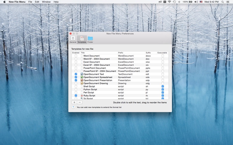 新建文件菜单(New File Menu)允许你从访达(Finder)右键菜单中快速创建各种文件。 注意:新建文件菜单 是一款 Finder 扩展,安装完毕后请务必在“系统偏好设置 » 扩展”中启用“新建文件菜单扩展”。 * 功能特色 • 在任意访达 (Finder) 窗口中点击右键创建新文件 • 通过“新建文件菜单”访达工具栏按钮创建文件 • 通过“新建文件菜单”共享菜单创建文件(请在“系统偏好设置 » 扩展 » 共享菜单”中启用) • 通过拖放方式创建新文件 • 内置超过 30 个文件模板(请在应用的首选项中启用所需模板) • 通过自定义模板,可以创建几乎所有类型的文件 • 通过众多选项设定应用的行为 • 通过快速操作(quick actions)在网盘目录中创建文件 * 内置的文件类型 • 纯文本文档 • 富文本文档(RTF) • 微软办公文档(Word, Excel, PowerPoint) • iWork 文档 (Pages, Numbers, Keynote) • OpenOffice / LibreOffice 文档 (Text, Spreadsheet, Presentation, Drawing) • 脚本 (Shell, Python, Perl, Ruby, etc.) • 以及许多其他类型文件 * 问与答 问:新建文件菜单精简版与完整版有何区别? 答:新建文件菜单精简版最多同时支持 3 个“新建文件”菜单项,完整版没有任何限制。 问:为什么我没看到创建文件上下文菜单? 答:请确保你已在“系统偏好设置 » 扩展”中启用“新建文件菜单精简版扩展”,并且在 新建文件菜单 的首选项中添加了该位置(目录)。 如果问题仍然存在,请在“系统偏好设置 » 扩展”中停用并重新启用“新建文件菜单精简版扩展”。如果问题还未解决,你可能需要重启 Finder 或者重启电脑。 问:没有看到任何模板文件,我该怎么办? 答:请移除“~/Library/Group Containers/85P8ZUTQL8.net.langui.NewFileMenuFree/Templates”目录并重启 新建文件菜单精简版,该目录将会被自动重建。(请确保此目录中没有存放重要文件) 问:可以在外部卷(例如移动硬盘、U盘)上添加上下文菜单吗? 答:可以。你需要将外部卷添加到 新建文件菜单 的 Finder 位置列表中。 问:怎样隐藏 新建文件菜单 Dock 图标? 答:退出 新建文件菜单 主程序即可,扩展会继续工作。 问:可以使保存对话框显示更迅速一些吗? 答:请在 新建文件菜单 的通用选项中启用“在后台运行辅助应用程序”。 如有你任何其他问题或者建议,请访问 https://langui.net/new-file-menu/ 留言反馈。 • 改进“New File Menu Lite”服务(在访达中右键点击文件或文件夹 -> 服务 -> New File Menu Lite)