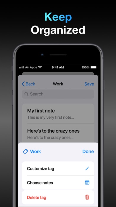 易于使用的记事本。 记录奇思妙想,记笔记,保持井井有条。 立即下载应用程序! Notes Air是一个简单的记事本,您可以在其中创建,编辑和捕获笔记。轻松搜索和管理您的笔记。 介绍革命性的笔记方法!写下你的想法,让我们先进的人工智能技术来完成其余部分。具有根据您的写作生成文本的能力,您永远不会错过节拍。无论您是为工作,学校还是个人使用做笔记,Notes Air都会使您的生活更轻松,更高效。在几秒钟内创建详细笔记,更快地记录,并使您的工作流程更加高效,从未像以前一样。 备注空气,您可以 ▶捕捉你的想法 ▶创建和编辑文本 ▶搜索和管理说明 ▶使用标签进行组织 注意:免费版本可能会受到限制的约束,并且限制可能会更改。 专业功能: •所有空气应用 •无限使用 •100%无广告 •所有功能 订阅专业功能可以自动免费访问Air Apps One。Air Apps One是终极套餐,包括30多个惊人的应用程序,可以让您的生活更轻松,帮助您满足所有日常需求。一个点击,一个订阅,一个下载,但可以访问30多个应用程序! 凭借涵盖各种类别的各种应用程序,例如生产力、学习、健身和创意的各种应用程序,您将可以访问应用程序,例如: Translate Now Scanner Air Water tracker 从不同的订阅选项中进行选择。我们的标准订阅选项是: 1周订阅 1个月订阅 1年订阅 确认您的购买并在每个续签期间开始,将向您的iTunes帐户收取订阅付款。带有免费试用期的订阅将自动续订付费订阅。您可以在每个当前订阅期结束之前至少24小时内在iTunes设置中取消订阅或免费试用。取消将在当前订阅期的最后一天后一天生效,您将降级为免费服务。免费试用期(如果提供)的任何未使用的部分(如果提供)将在您在免费试用期内购买高级订阅时被没收。 Facebook:https:/www.facebook.com/airappsco Twitter:https:/twitter.com/airappsco Instagram:https:/www.instagram.com/airappsco 隐私政策:https:/airapps.co/privacy 使用条款:https:/airapps.co/terms 支持:support@airapps.co 本次更新有什麼新內容: • 使用者體驗提升:我們優化了介面,讓您的操作更加直觀流暢。 • 錯誤修正:我們修正了一些惱人的問題,以確保應用程式更穩定。 立即下載,體驗這些絕佳的改進!