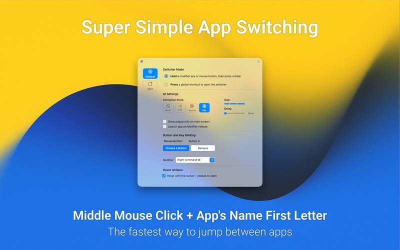 Dory 是为记不住快捷键的人准备的应用切换器。 点击鼠标中键(或右 Command 键),开始输入应用名称。 输入首字母、中间字母、缩写,甚至相似的应用名称。 你也可以连续按首字母来循环浏览以该字母开头的应用。 更喜欢点击而不是长按?没问题。使用按压模式,你可以通过全局快捷键或触控板手势打开 Dory 的简洁界面。 没有额外快捷键。 无需设置。无需记忆。 Dory 开箱即用,并会随着时间学习你的使用习惯,优先显示常用应用。 简单。快速。毫不费力。 --- 主要功能: • 通过输入首字母、中间字母、缩写或相似应用名称来切换应用 • 持续点击相同字母在匹配的应用间循环切换 • 学习您的习惯并优先显示您最常用的应用 • 开箱即用,无需任何设置 • 可同时用作应用切换器和应用启动器 精美界面: • 三种精美的界面模式可供选择 • 每种界面模式都有多种尺寸选项 触发 Dory 的方式: • 鼠标按钮 • 按住修饰键 • 点击或双击修饰键 • 修饰键加按键组合 • 超级键 • 触控板手势 键盘布局支持: • QWERTY • Dvorak • AZERTY 完全本地化为: 西班牙语、简体中文、法语、德语、日语、葡萄牙语、韩语、意大利语、俄语、荷兰语 • Improved App Management screen • Repeating the trigger key now closes the UI • Fixed issues with Progressive Web Apps (PWA)