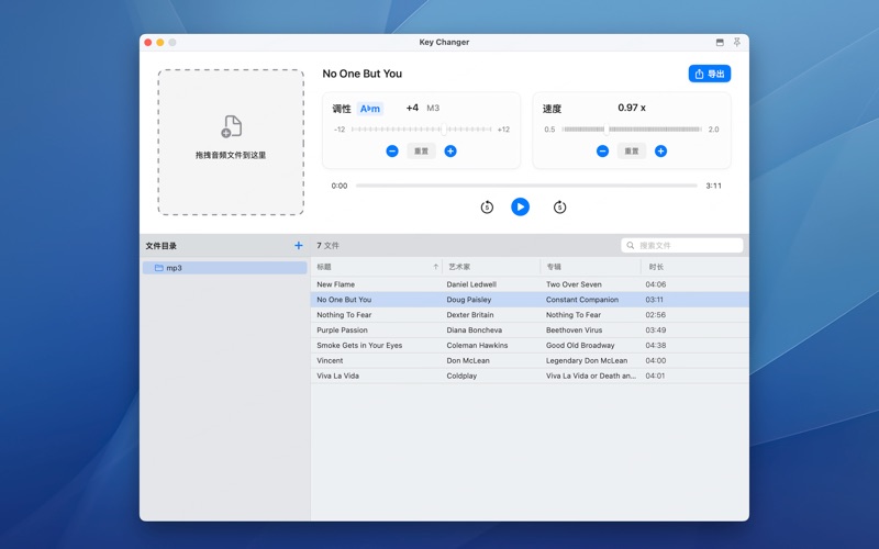 音乐变调是一款专为音乐人、制作人和音频爱好者设计的专业音频处理应用。精确且轻松地转换您的音频文件。 核心功能: • 智能音调检测和移调 • 实时音高调整而不影响节奏 • 可变播放速度控制 • 多种格式的高品质音频导出 • 直观的拖放界面 • 专业级音频处理算法 适用场景: • 音乐家在不同调性中练习 • 歌手调整歌曲以适应音域 • 音乐制作人创作混音 • 音频内容创作者 • 任何需要处理音频文件的用户 技术优势: • 支持 MP3、WAV、AIFF 和 AAC 格式 • 基于 FFmpeg 的先进音频处理 • 具有智能增益控制的音量最大化 • 批量处理功能 • 精确的波形可视化 无论您是专业音乐家还是初学者,音乐变调都能提供您所需的工具,以任何调性、任何速度处理音频,获得专业级效果。 Privacy Policy: https://tapaudio.github.io/privacy/keychanger/en/ End User License Agreement (EULA): https://www.apple.com/legal/internet-services/itunes/dev/stdeula/ Feedback: If you have any questions, please contact us by email: tapaudio@qq.com - 若干已知问题解决;