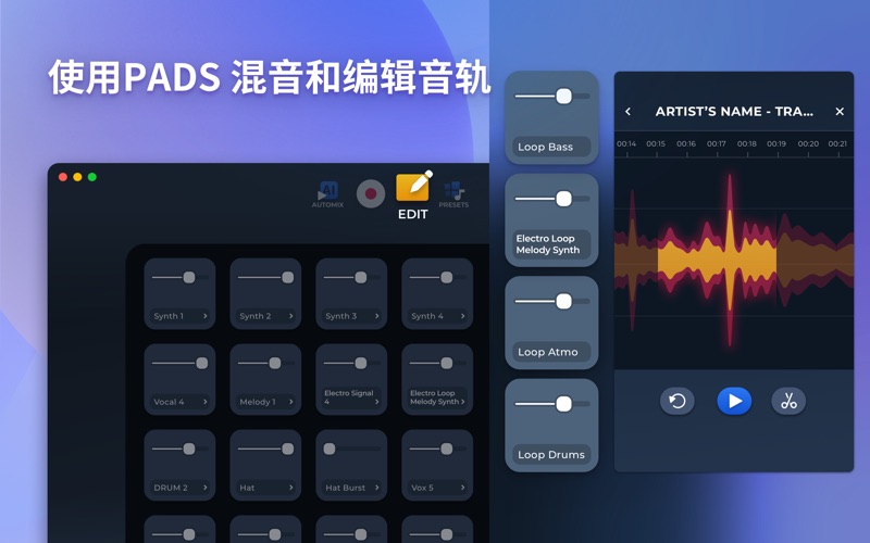 用Loop Mash Up制作专业音乐。这个应用程序是一个强大的采样器,有大量的循环和预置。 所有样品均由专业音乐家和DJ创造。只需敲击键盘就能获得强大的节拍,并获得即时效果! 各种电子音乐风格 从6种最流行的电子音乐中选择 各种样品和循环 每种音乐风格的声音节拍 可调节的节拍垫&热键 -调整样本和循环布局并分配热键 现场记录你的曲目 -在设备上创建和保存歌曲 借助人工智能生成曲目 下载Loop Mash Up,成为最好的电子音乐制作人! https://musictopia.club/privacy https://musictopia.club/tos 我们更新了界面并对您的语音和声音录制进行了一些小的调整,以便您可以轻松录制和保存!如果您对应用程序的性能感到满意,请随时留下好评 :)